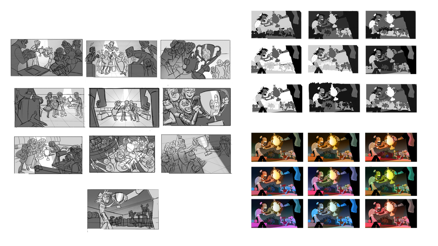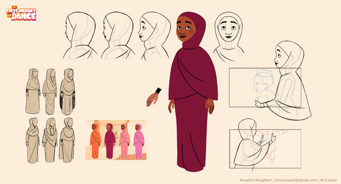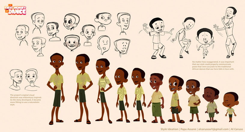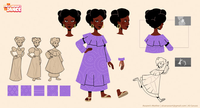 "My First Memory of Dance" is a short film produced by Heritage Works, Eat Rice Studio, and Marco Orozco in Detroit. As a visual development intern, I was responsible for style frames, character design, backgrounds, and assets such as promotional material, patterns, and credits icons. More work can be seen on my website.