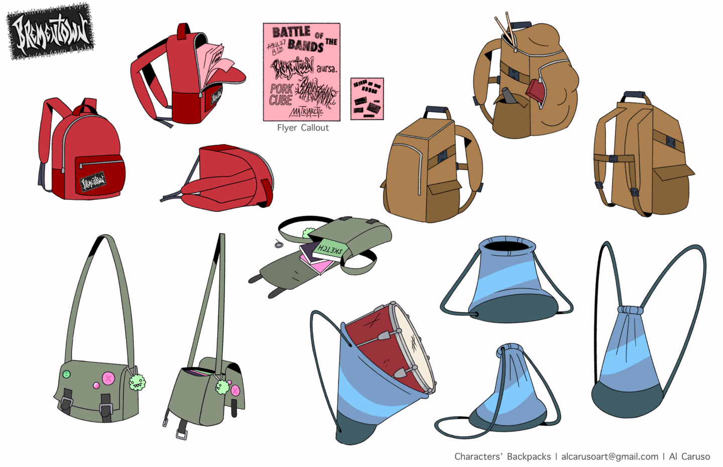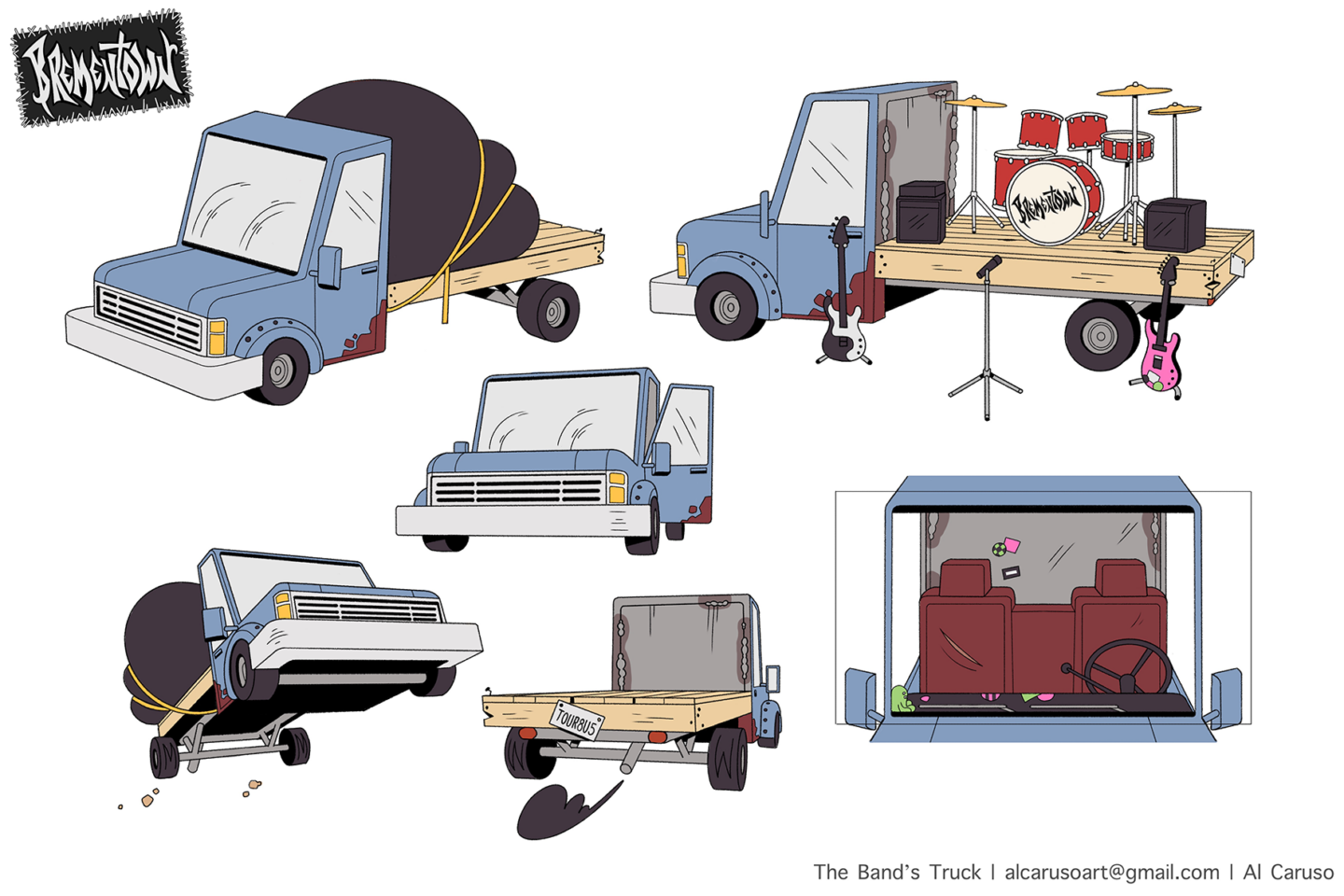 An animated reimagining of the folktale "The Musicians of Brementown" as a scrappy band. Features character and prop designs. More available on my website.