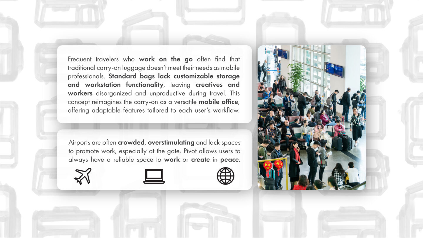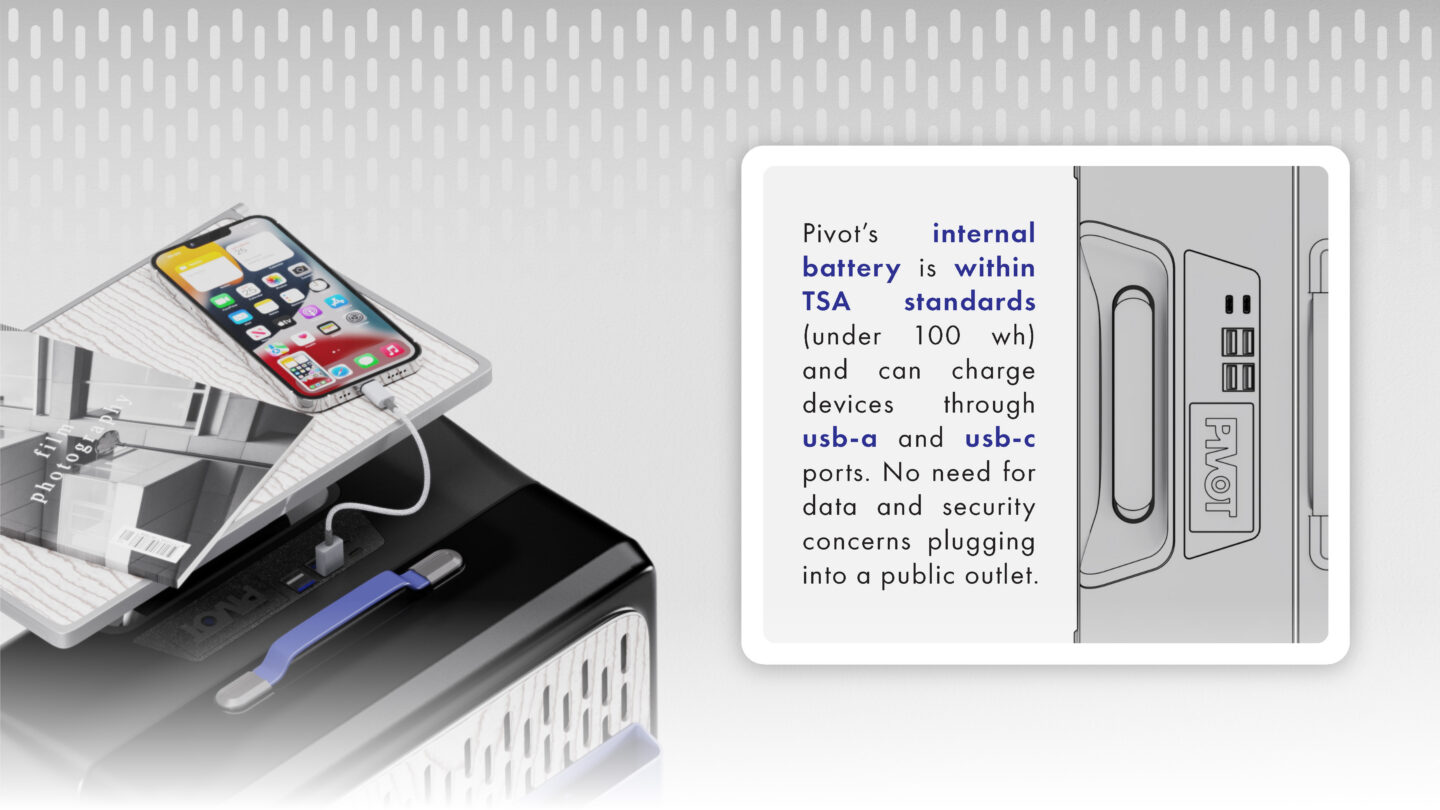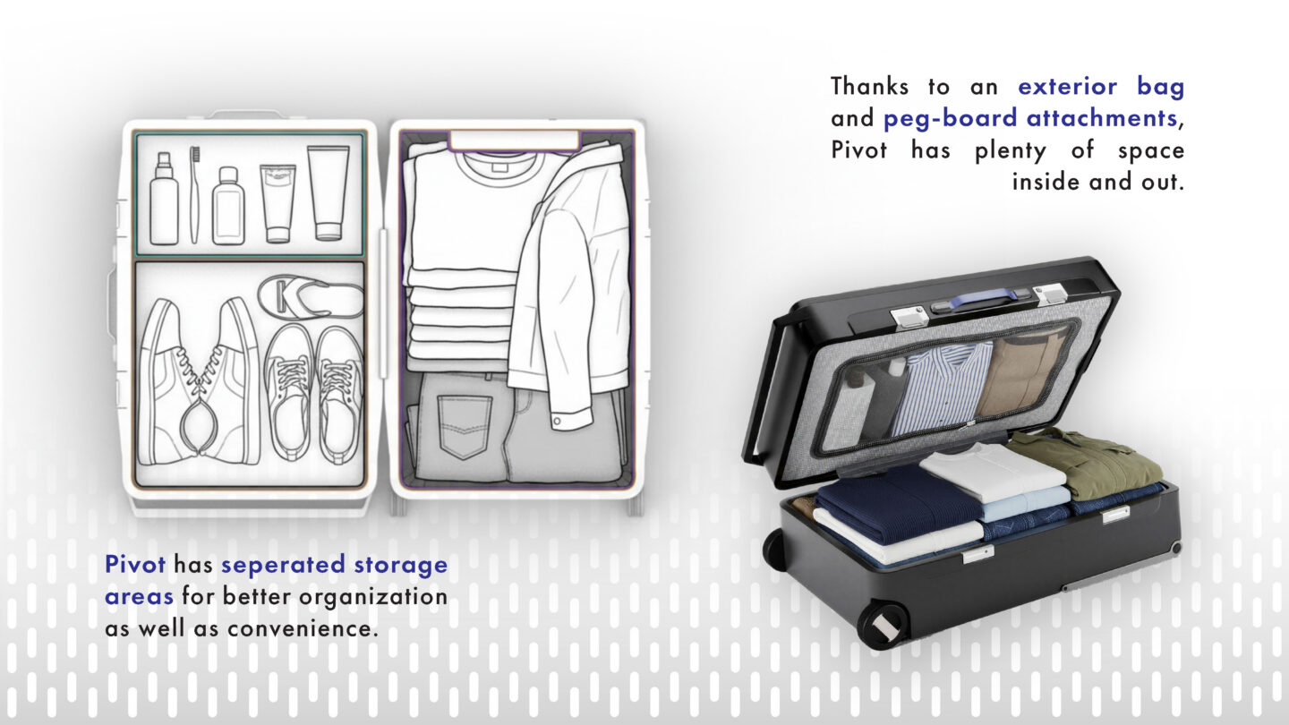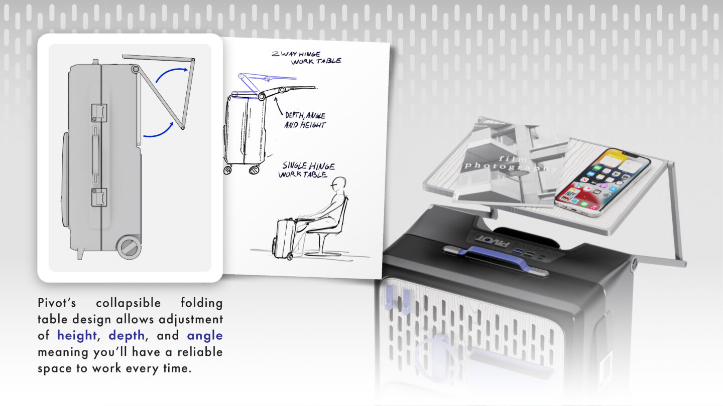 Pivot is a carry-on luggage concept designed to be a portable work station to enable and promote productivity anywhere you go.