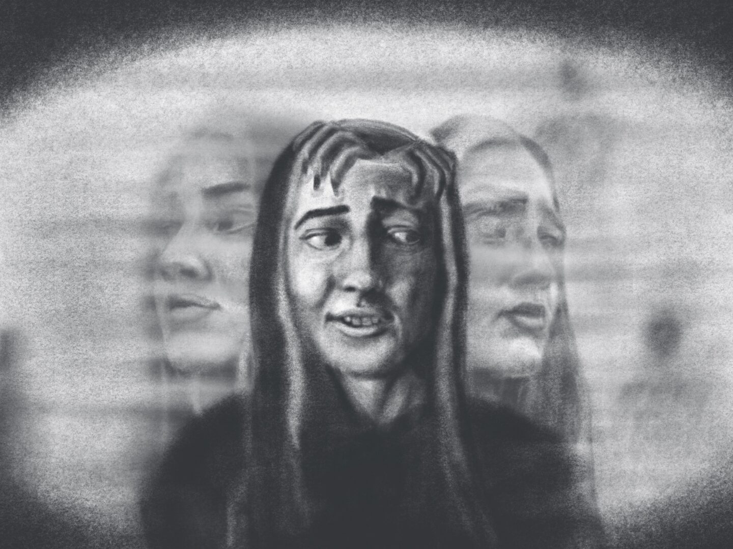 This is a depiction of paranoia and how it feels to be paranoid made digitally with a charcoal brush.