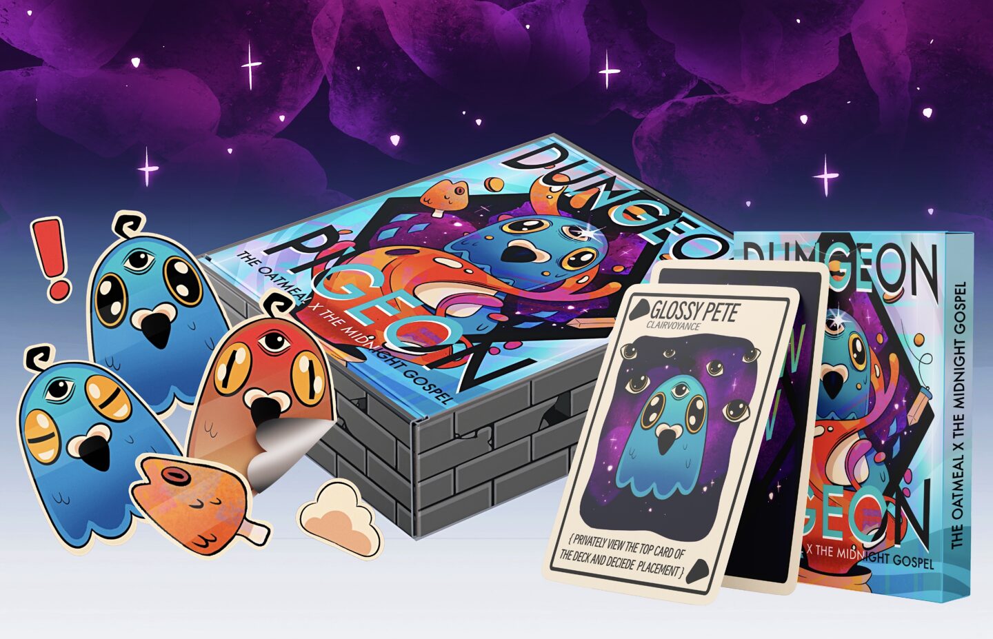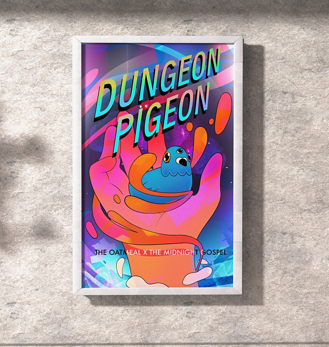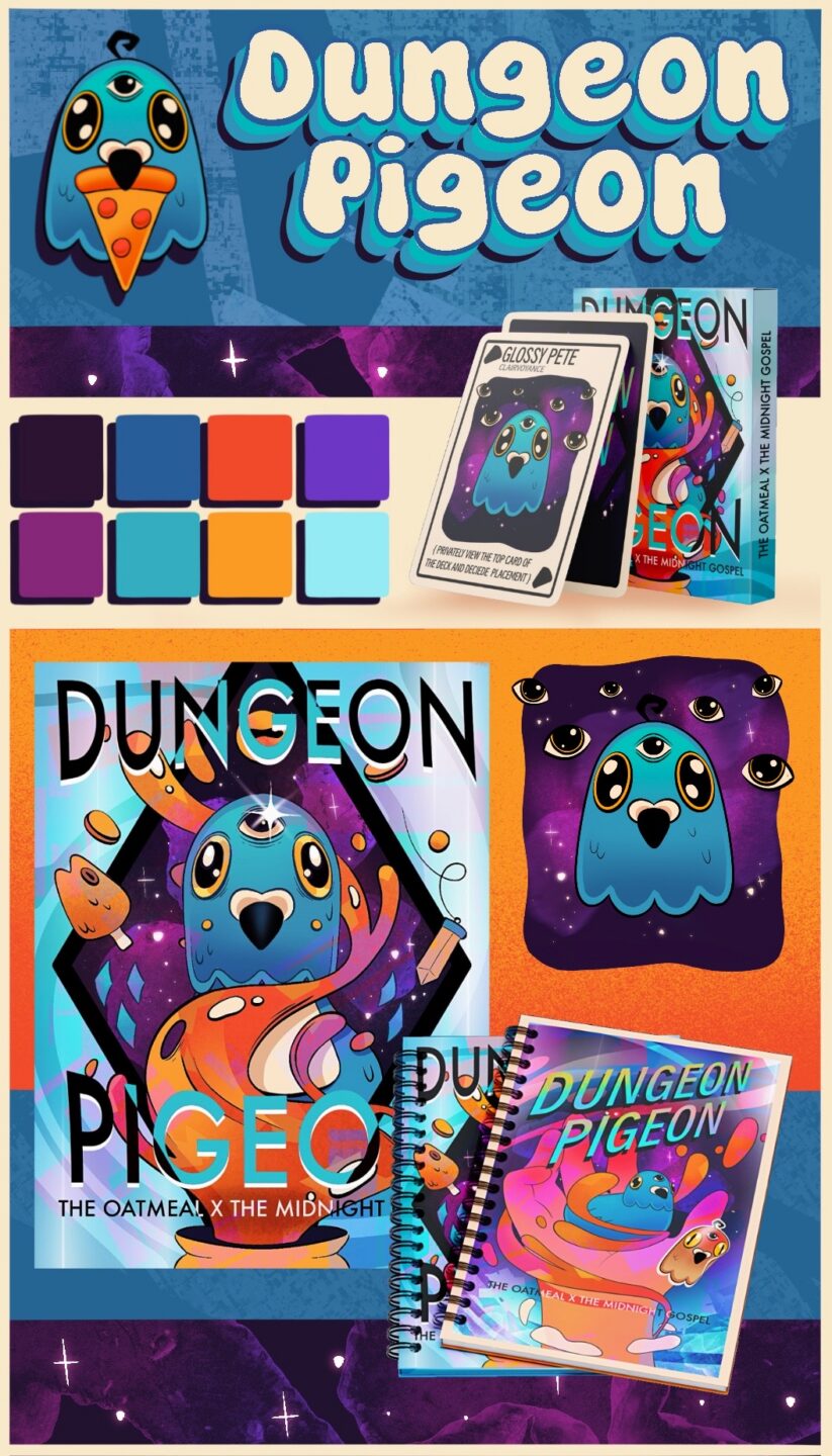 Dungeon Pigeon is an original card game concept combining mystery and adventure. This student project required an in depth exploration of the game, character development, attention to detail, and the consideration of multiple assets. With visual influences from the show, The Midnight Gospel, and gameplay influences from The Oatmeal games. The goal of this project was to create a hypothetical brand collaboration with plausible gameplay and illustrations that truly reflected the intended mood.