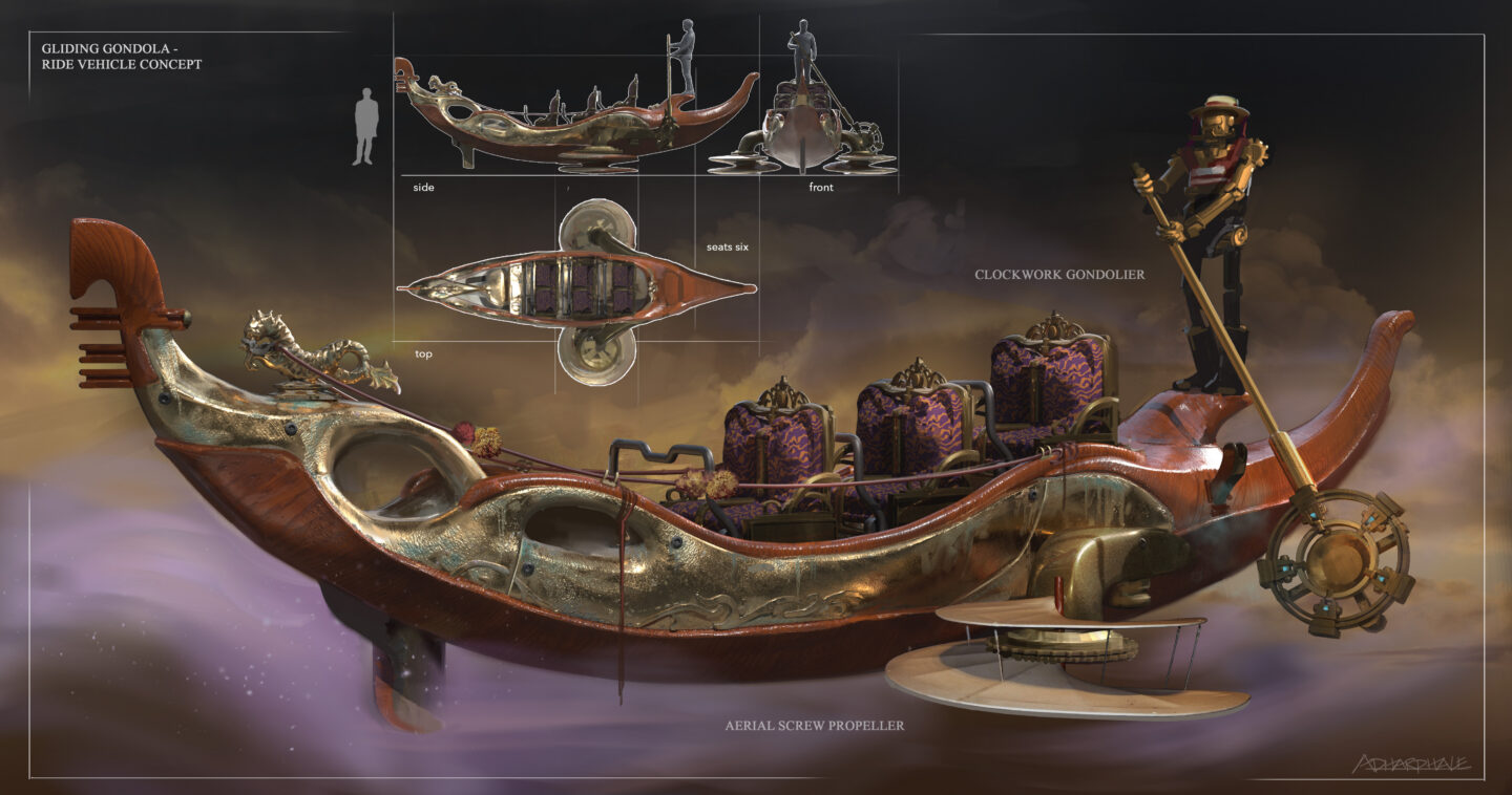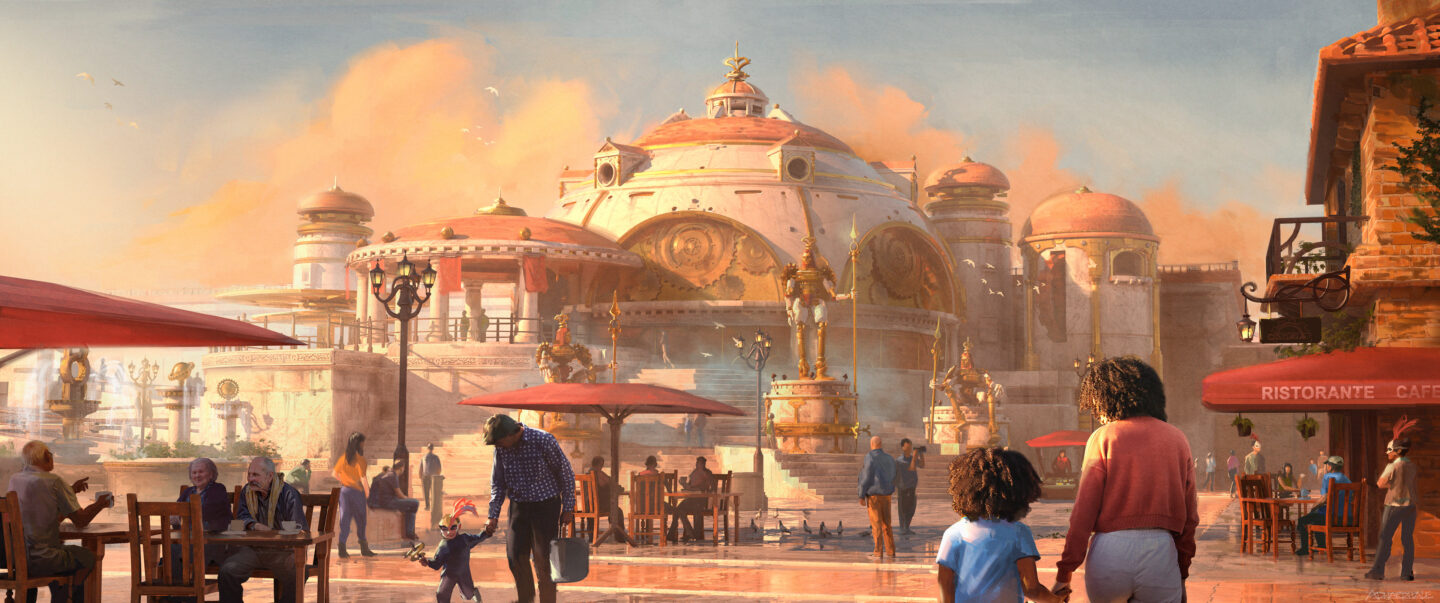 What if the Italian Renaissance never ended, and the greatest inventors and artisans of the era built their own prosperous city that blends Venetian culture with mechanical marvels? As guests enter the park, the town folk are in preparation of the annual Carnival festival, where the most prominent artists and engineers showcase their wonderful creations.
