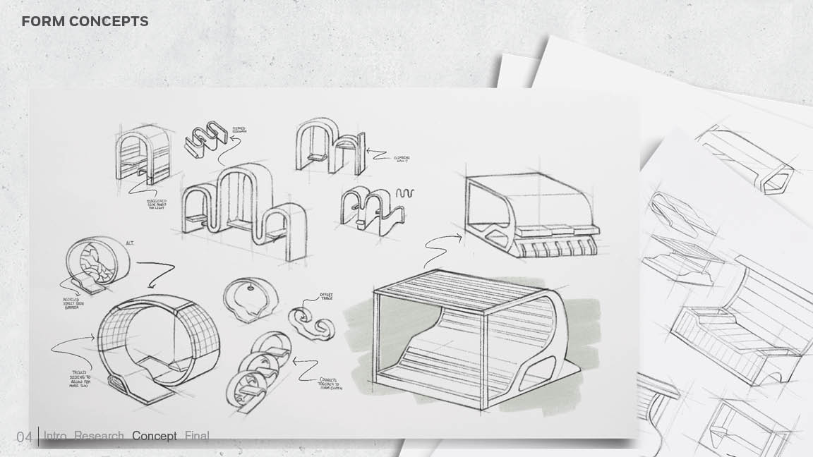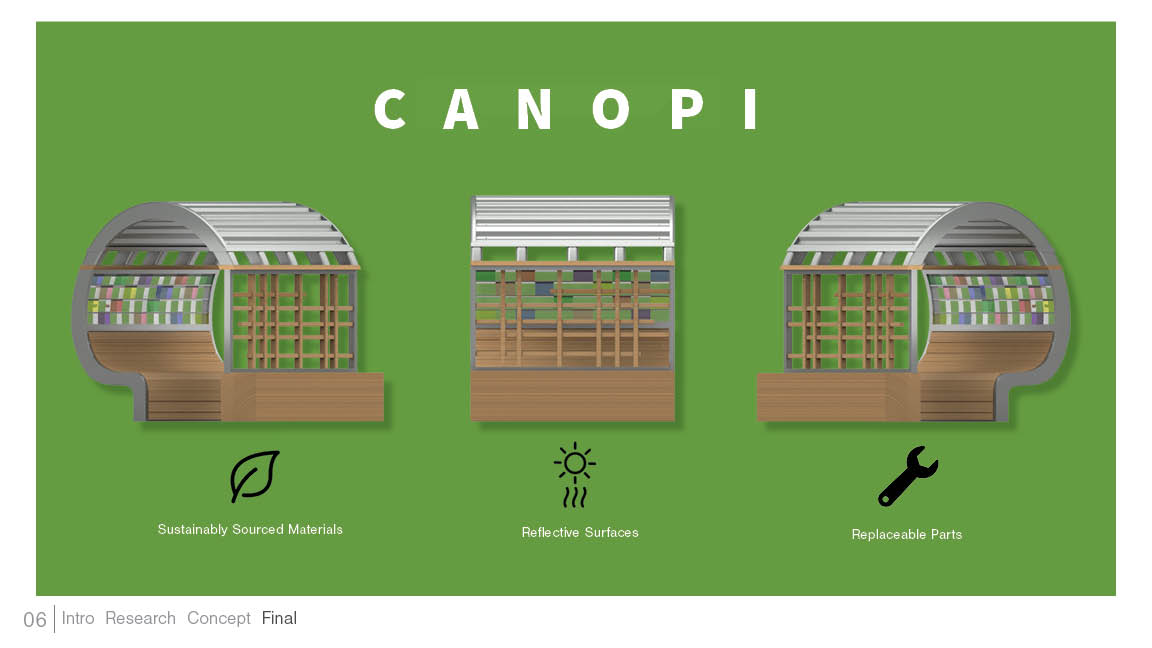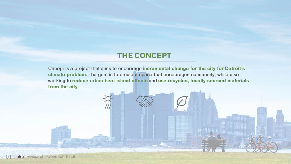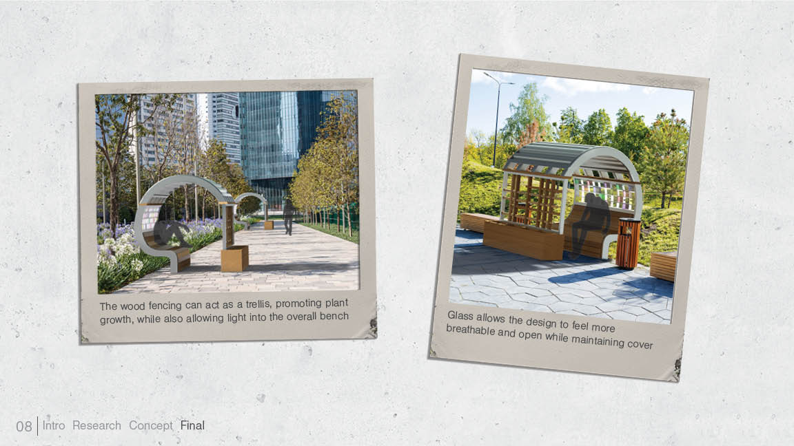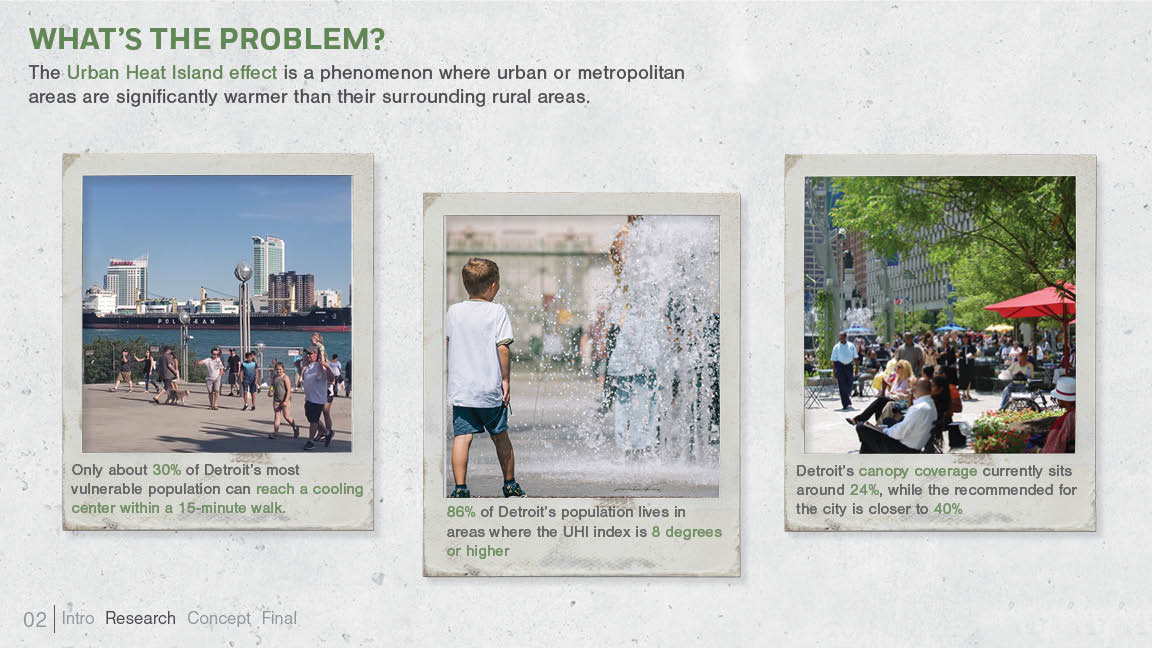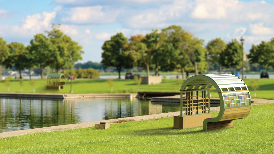 A sustainable outdoor bench serving as cooling centers to combat the Urban Heat Island problem in the city of Detroit