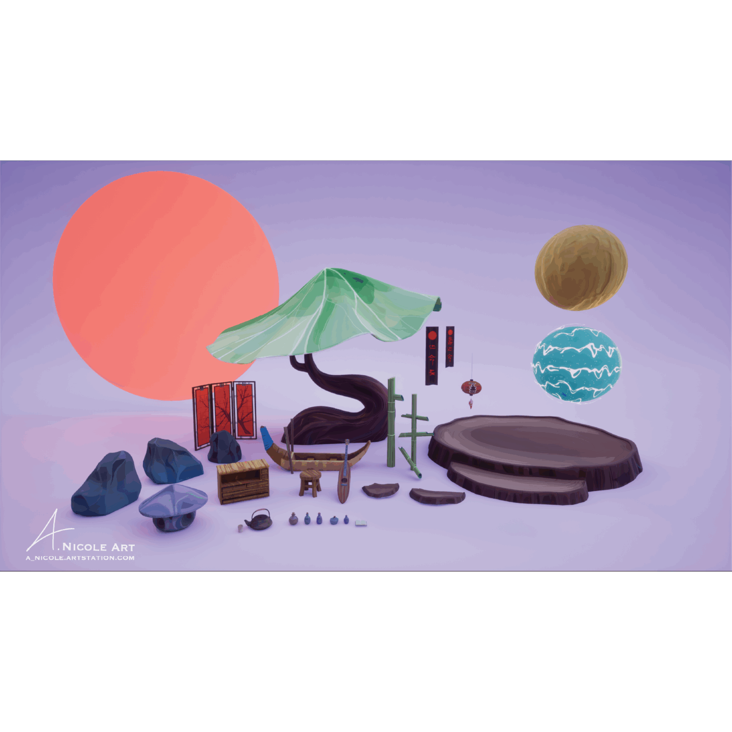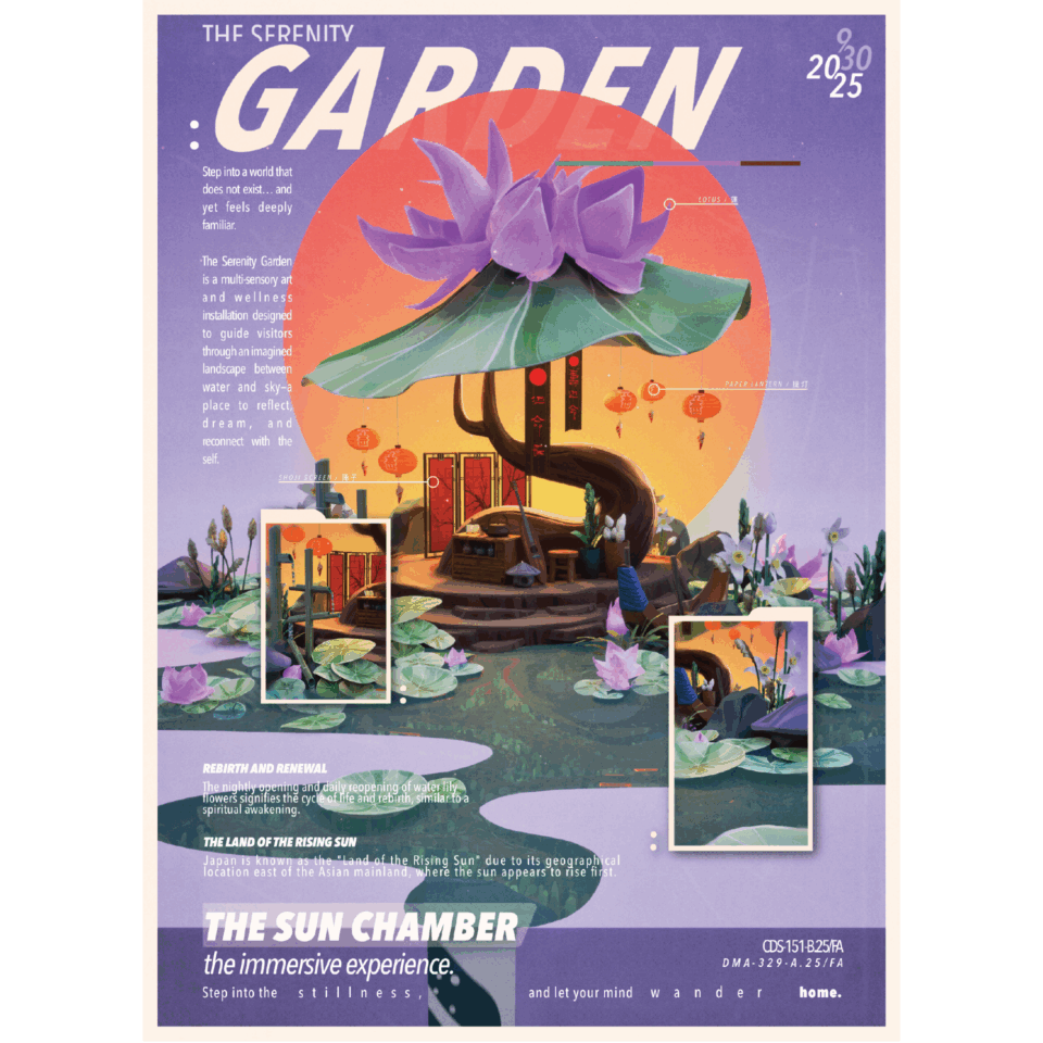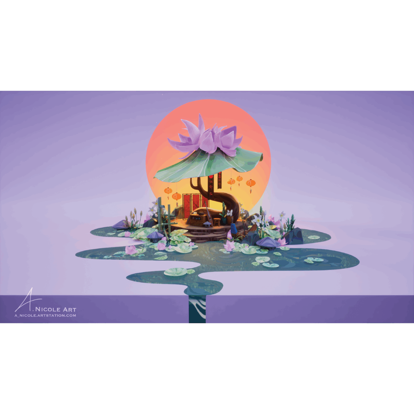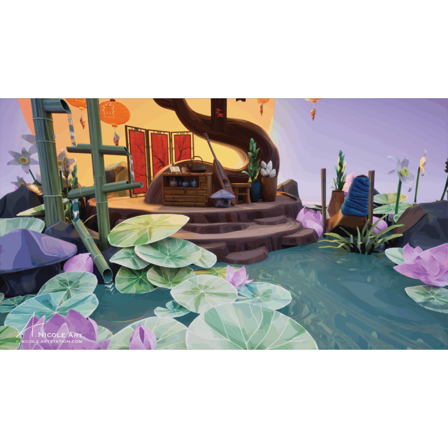 An original concept deriving from ancient Japanese ponds and gardens. I used Maya, Zbrush, Substance Painter, Substance Designer, Unreal Engine, After Effects, and Procreate to create this project.