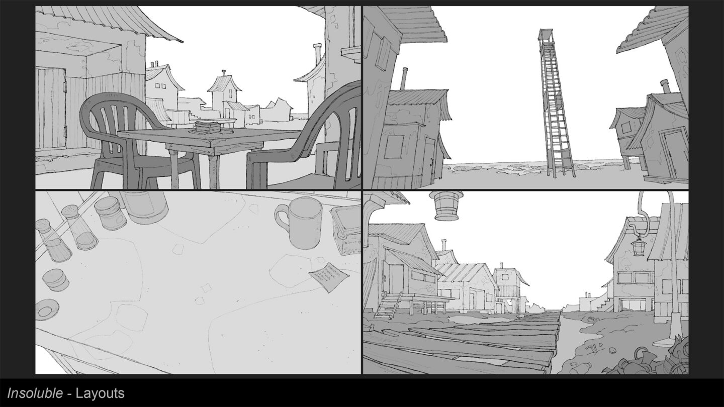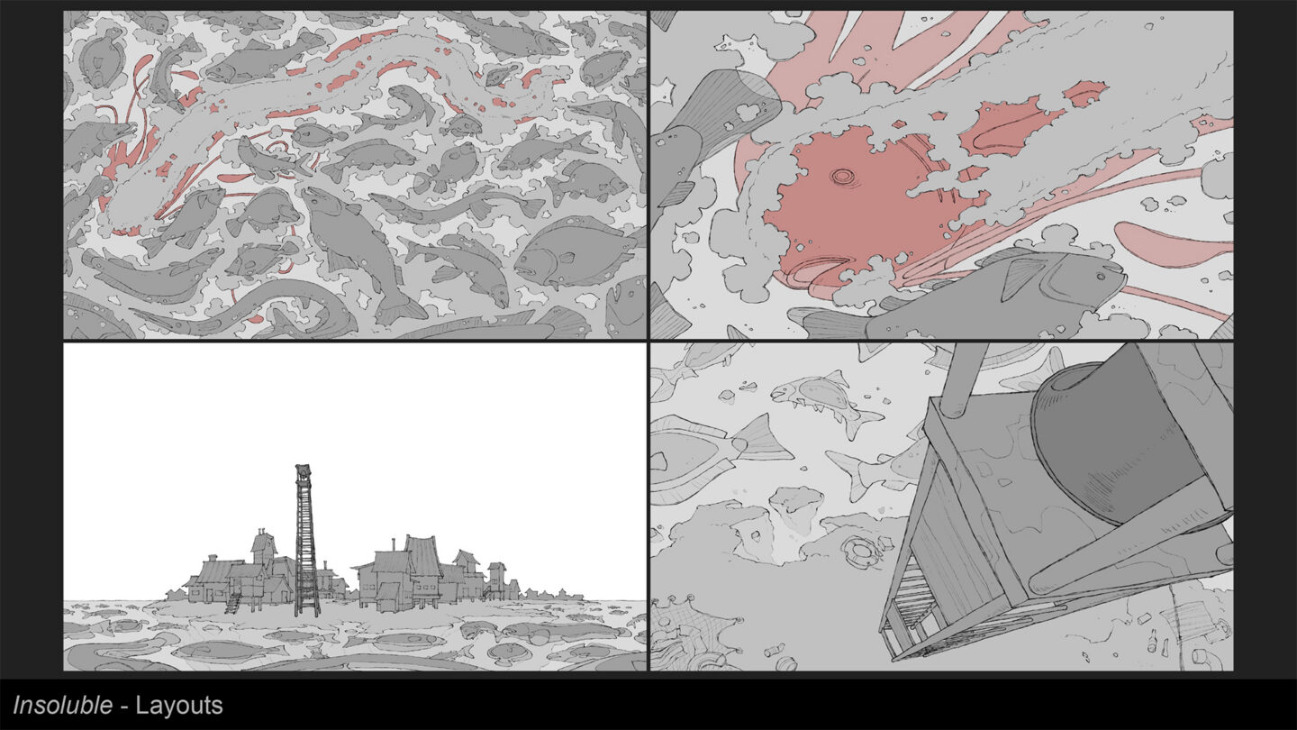 "Insoluble" is my currently in-the-works junior film! A town of people living on an oceanic garbage patch rushes to evacuate when faced with destructive weather summoned by magic from the deep sea.
