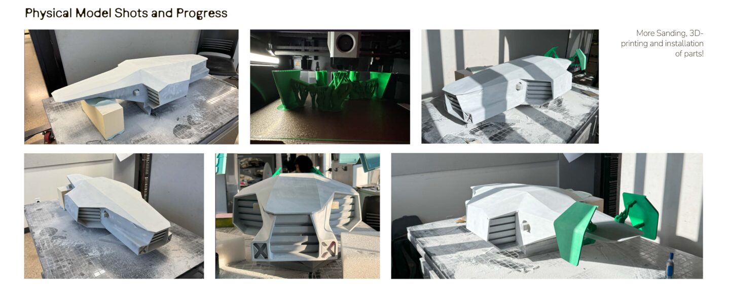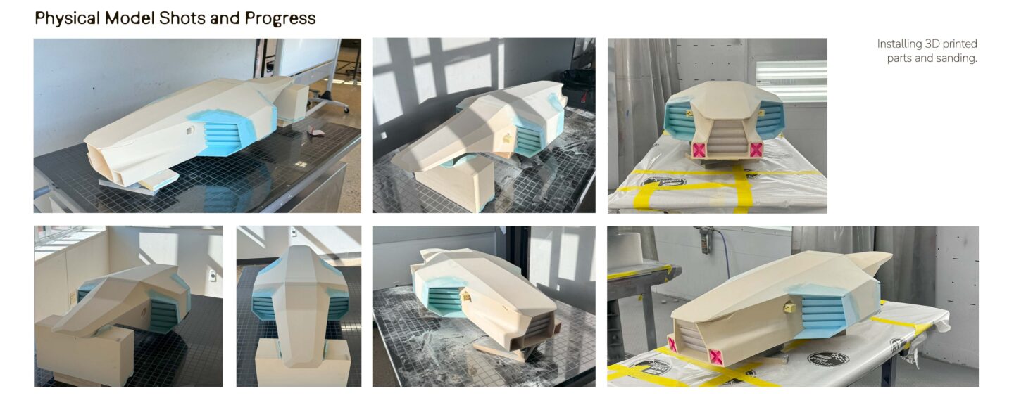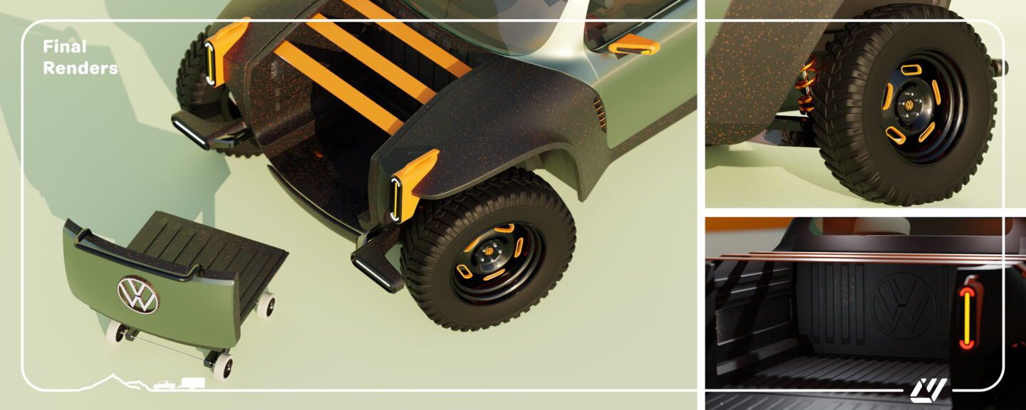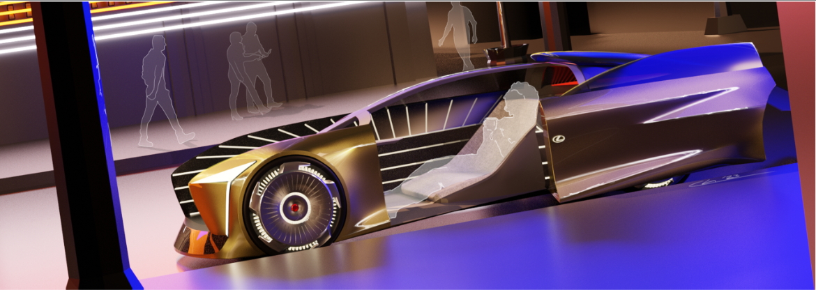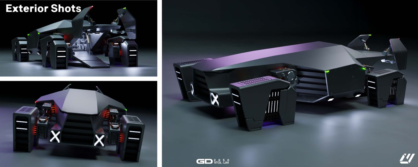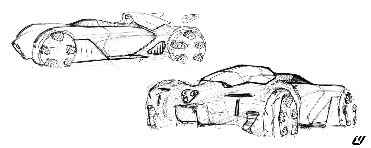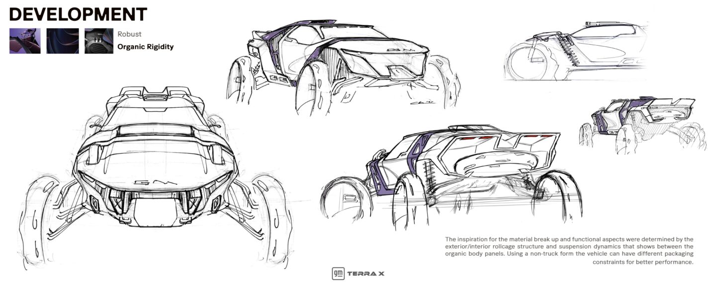 Offroad racing vehicle for the Baja 1000 in 2050. Where dirt roads and offroad racing is significantly more aggressive than before. A cross between a muscle car and trophy truck with a focus on pushing suspension technology into the future while guiding form.