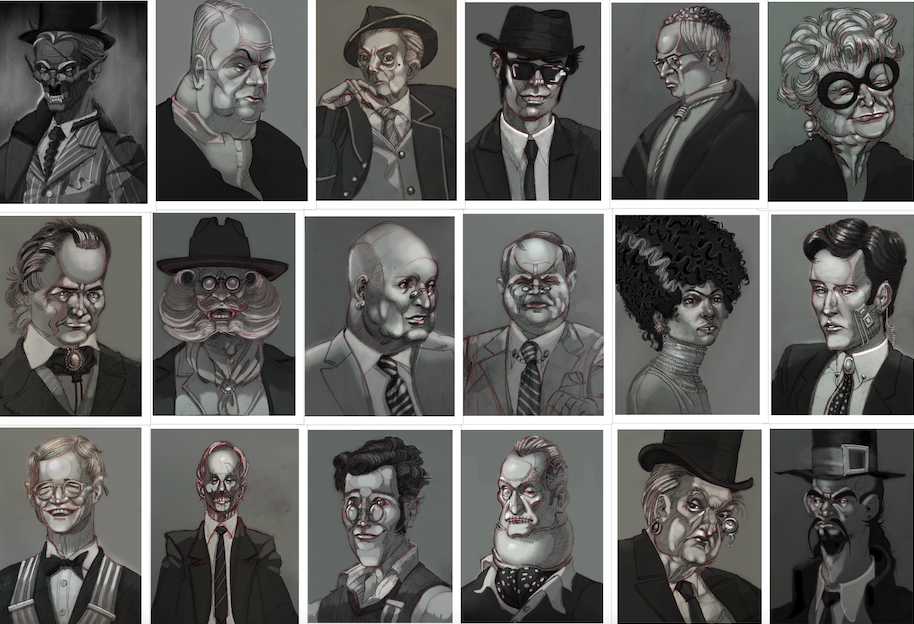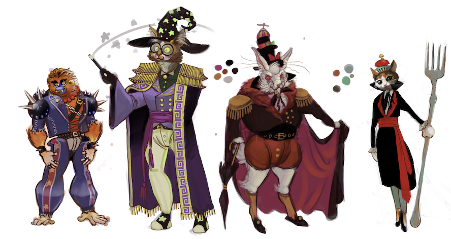 Character turnarounds, lineups and prop design inspired by the monkey king and wizard of oz.