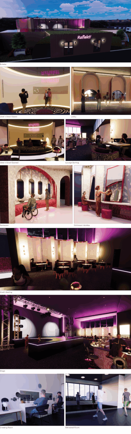 Reflekt is a drag bar and lounge that promotes wellness within the LGBTQ+ community through health focused mocktails, nutritious menu options, and movement friendly spaces that encourage connection. It blends vibrant drag culture with wellness programming to create an inclusive, joyful environment centered on holistic well-being.