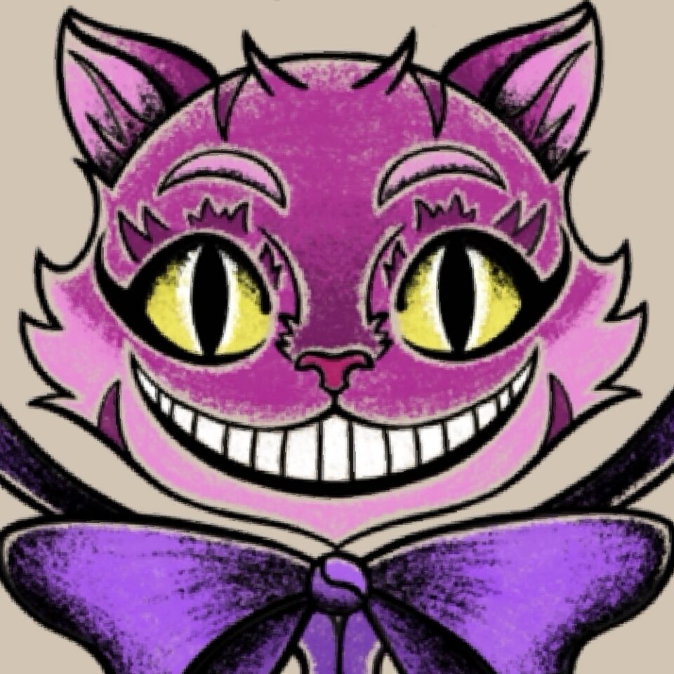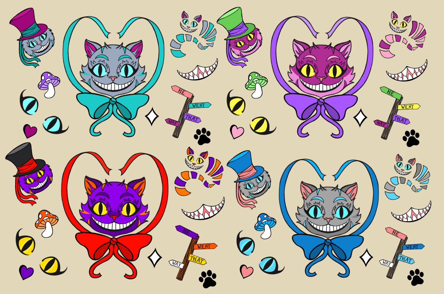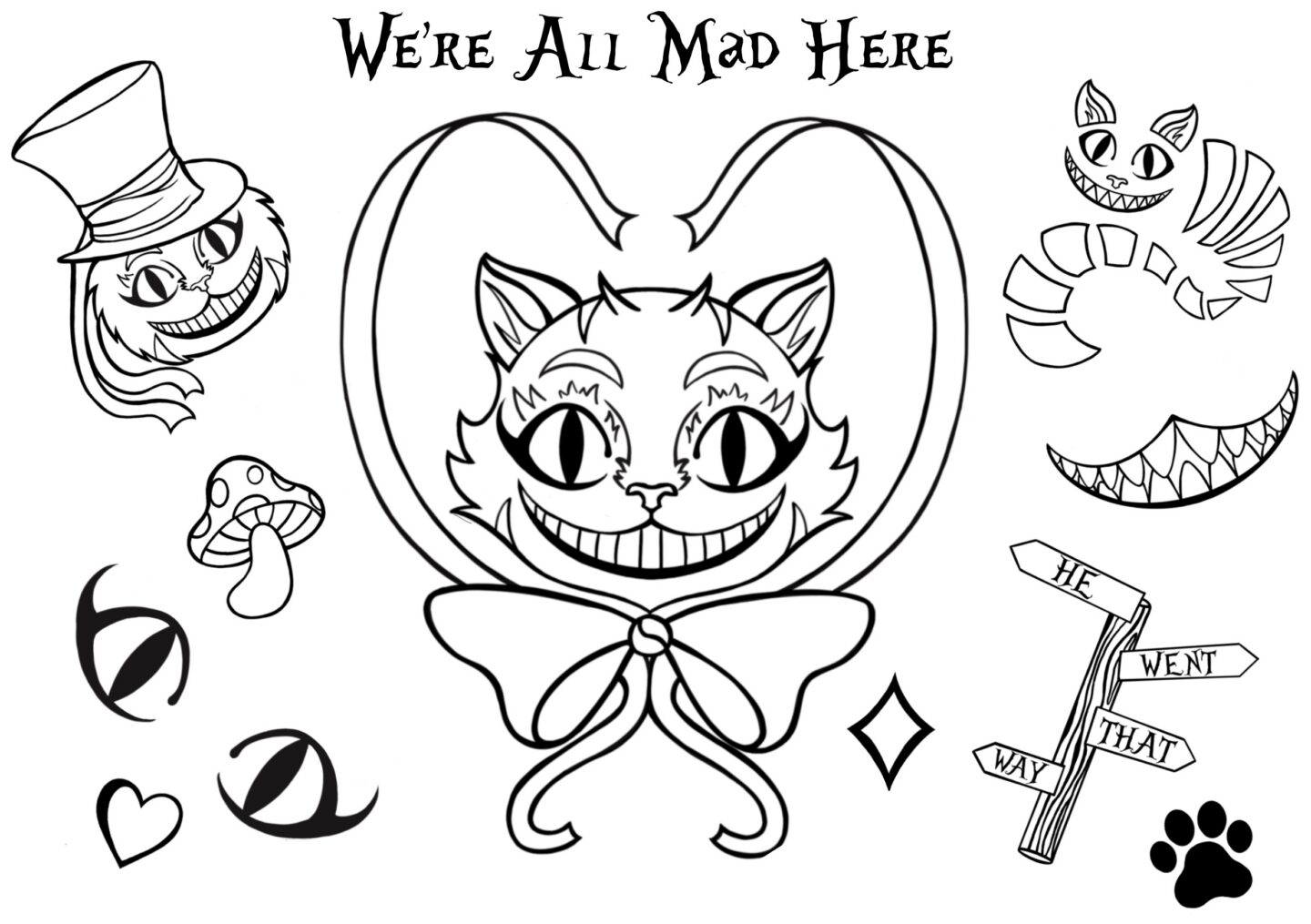 Cheshire Cat tattoo flash sheet