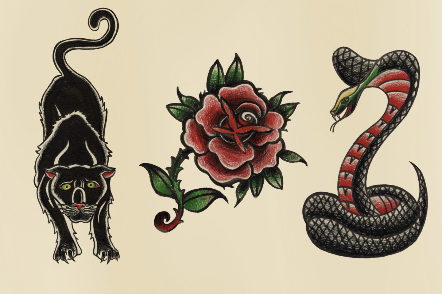 American traditional flower tattoo flash sheet