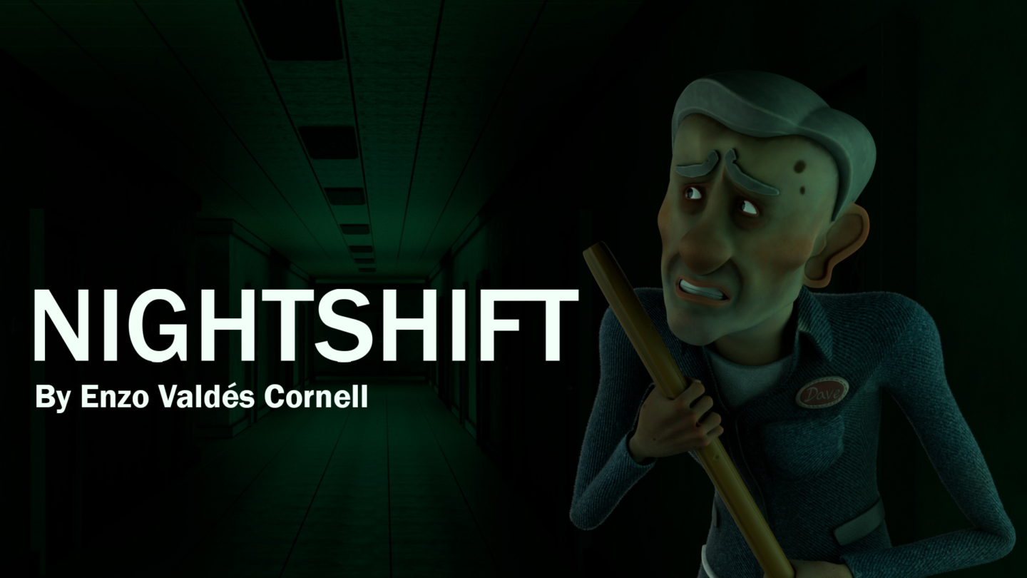 When Dave the janitor clocks in for the night shift, his monotonous night is upturned as he faces an otherworldly presence. Modeling done in Zbrush and Maya, Animation, Lighting, and rendering done in Maya using Arnold, Compositing done in Aftereffects, and Sound Design done in Premiere Pro. Sounds from Freesound.org