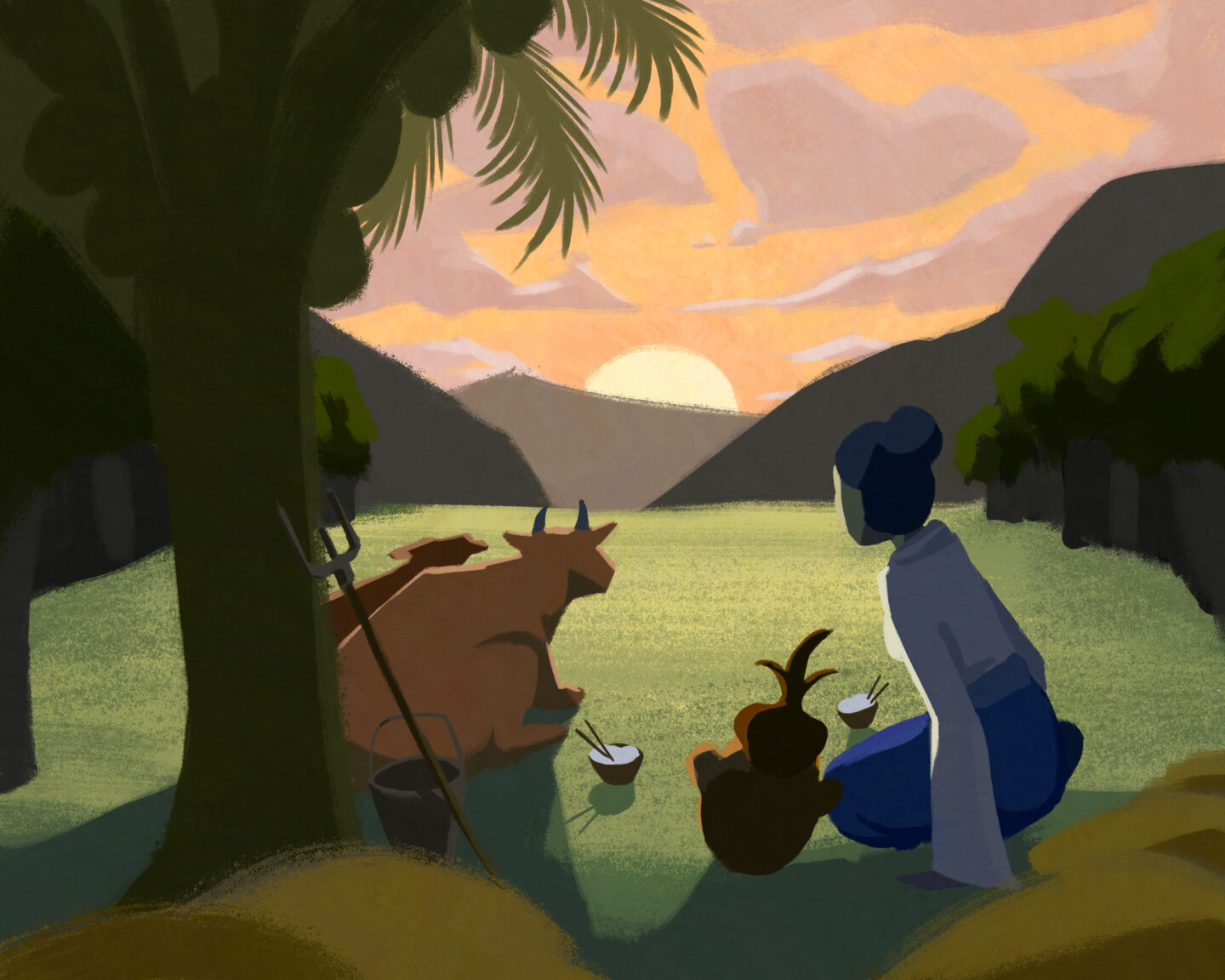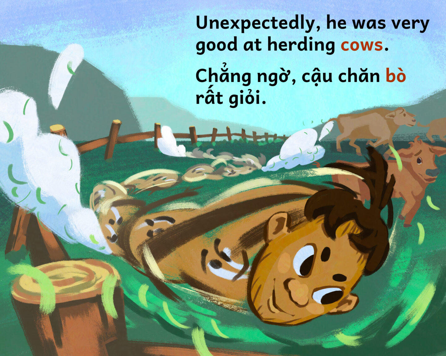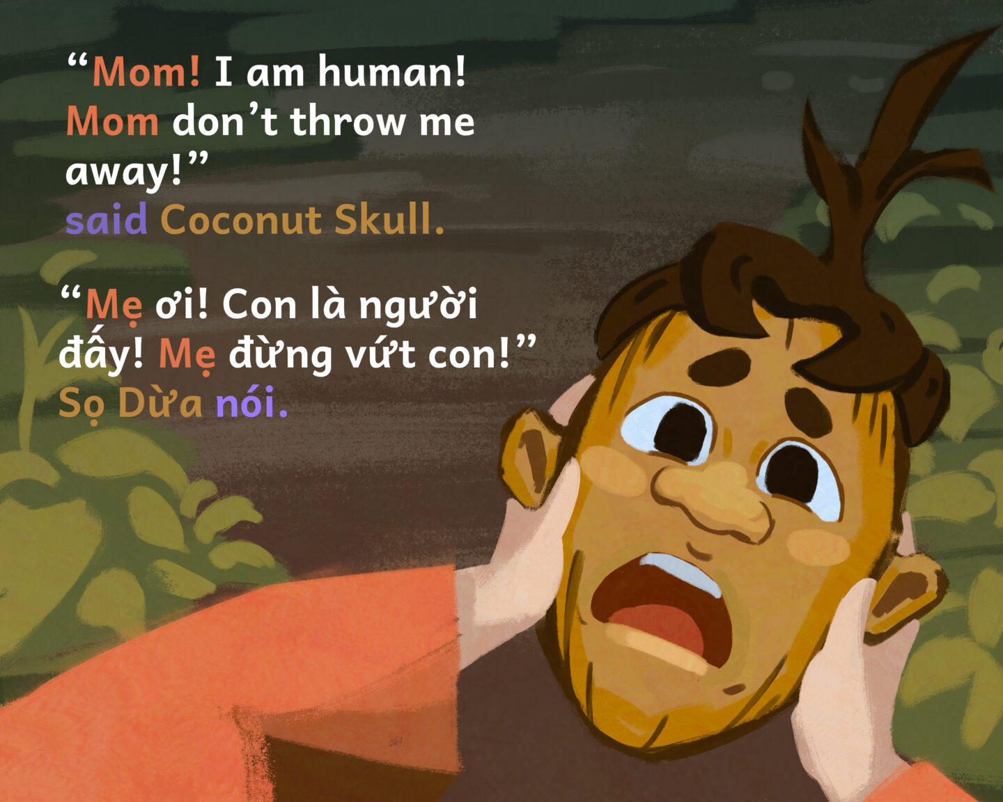Original illustrations based on the traditional Vietnamese folktale Sọ Dừa were created specifically for Vietnamese-to-English and English-to-Vietnamese language learners.
