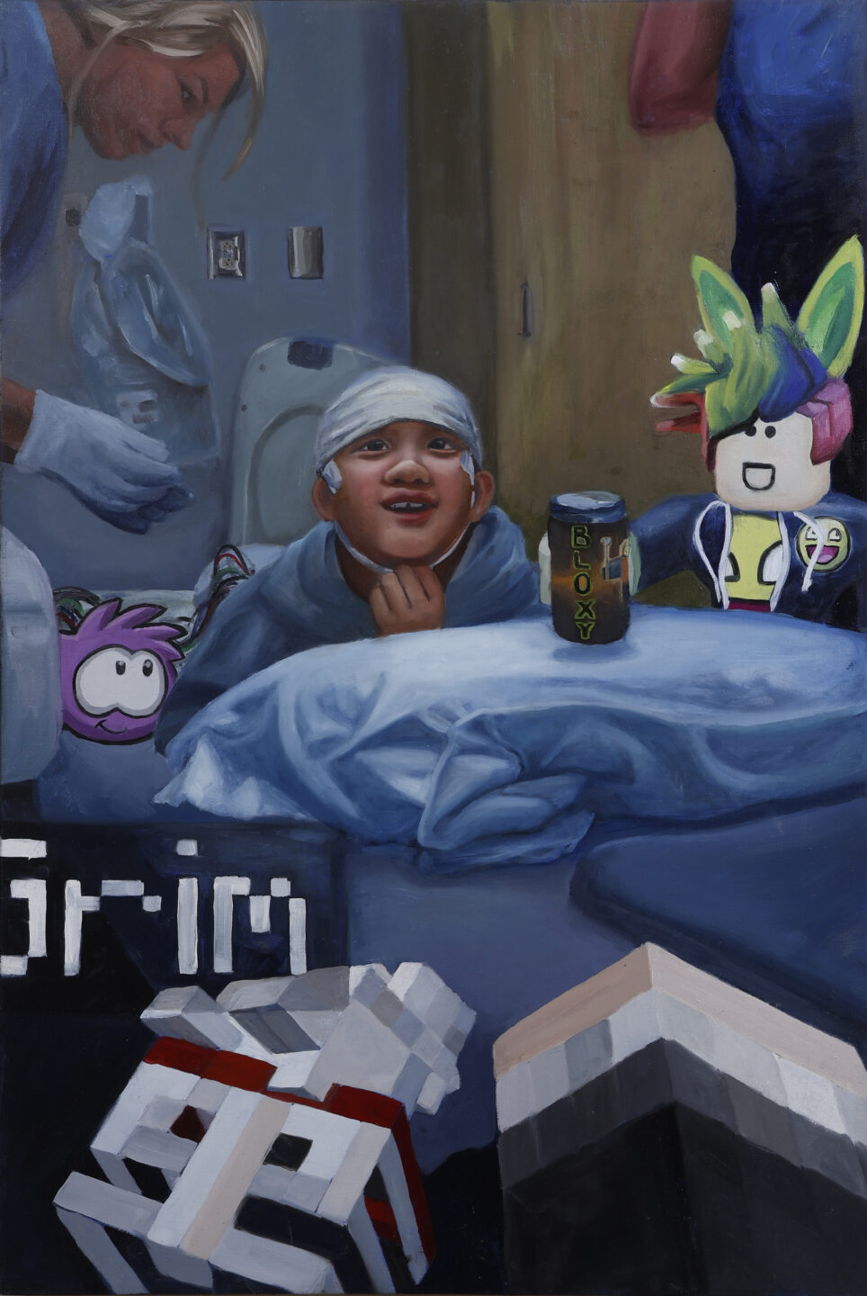 Various self-portraiture investigates themes of identity, emotion, and self-worth.