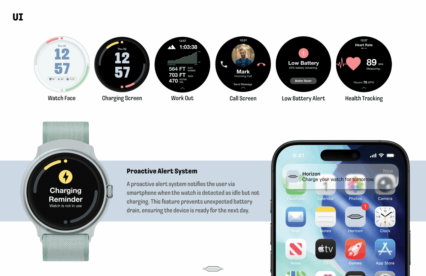 Horizon is a smartwatch that eliminates battery anxiety and offers an improved charging experience for outdoor enthusiasts, the power users of smartwatches.