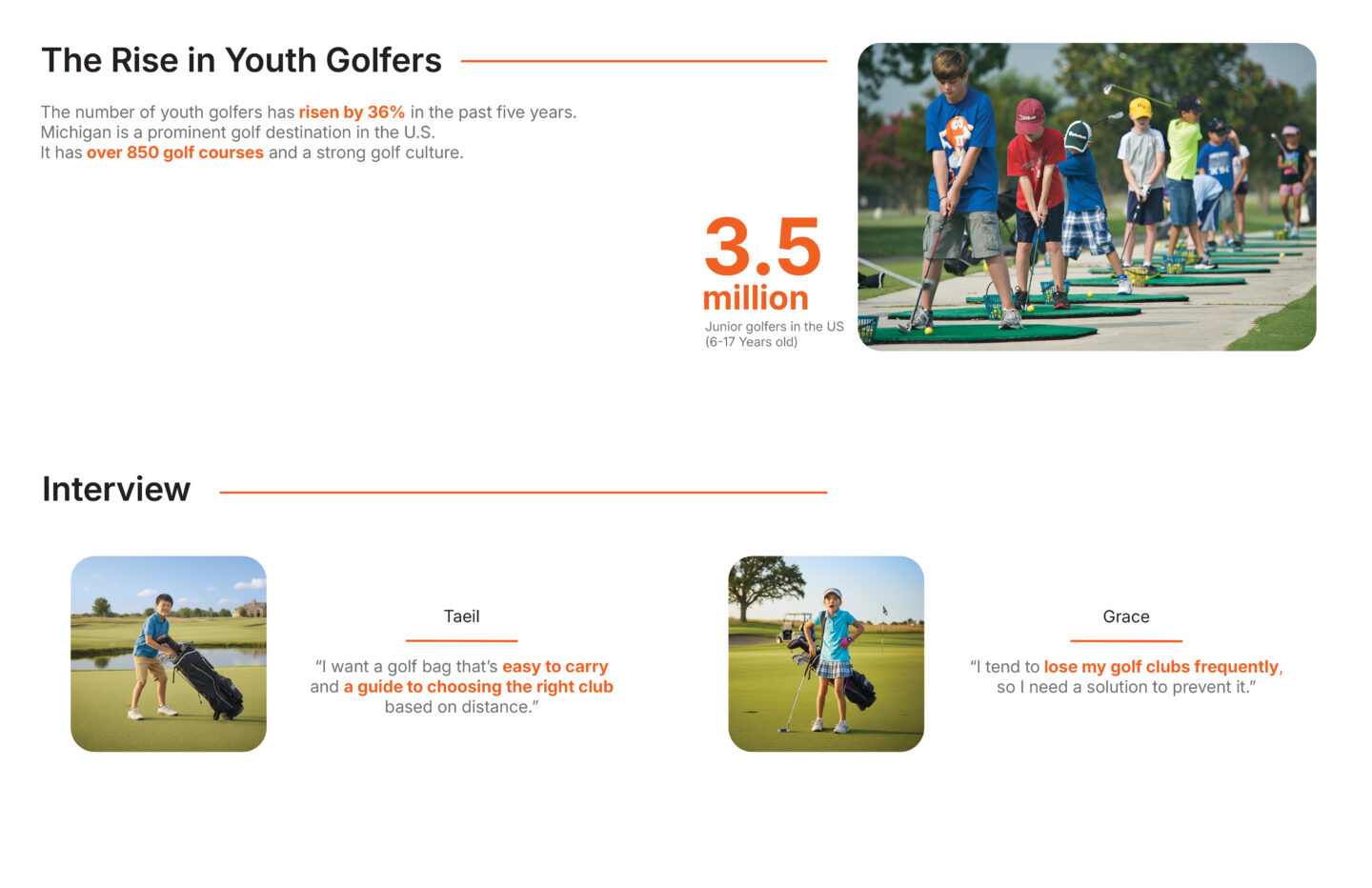 Caddia is an easy-to-carry golf bag that improves mobility and manageability for youth golfers struggling with carrying their gear.