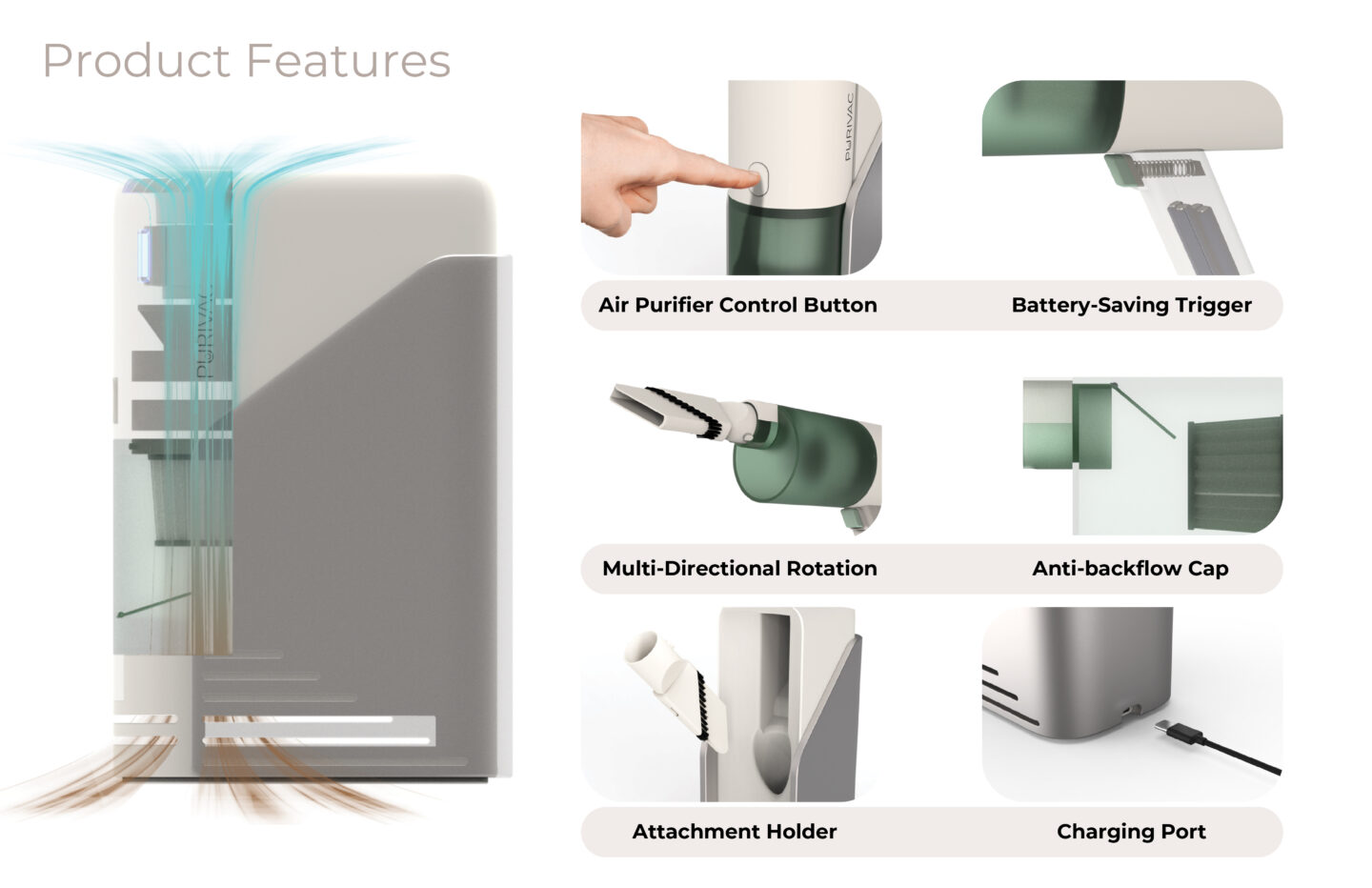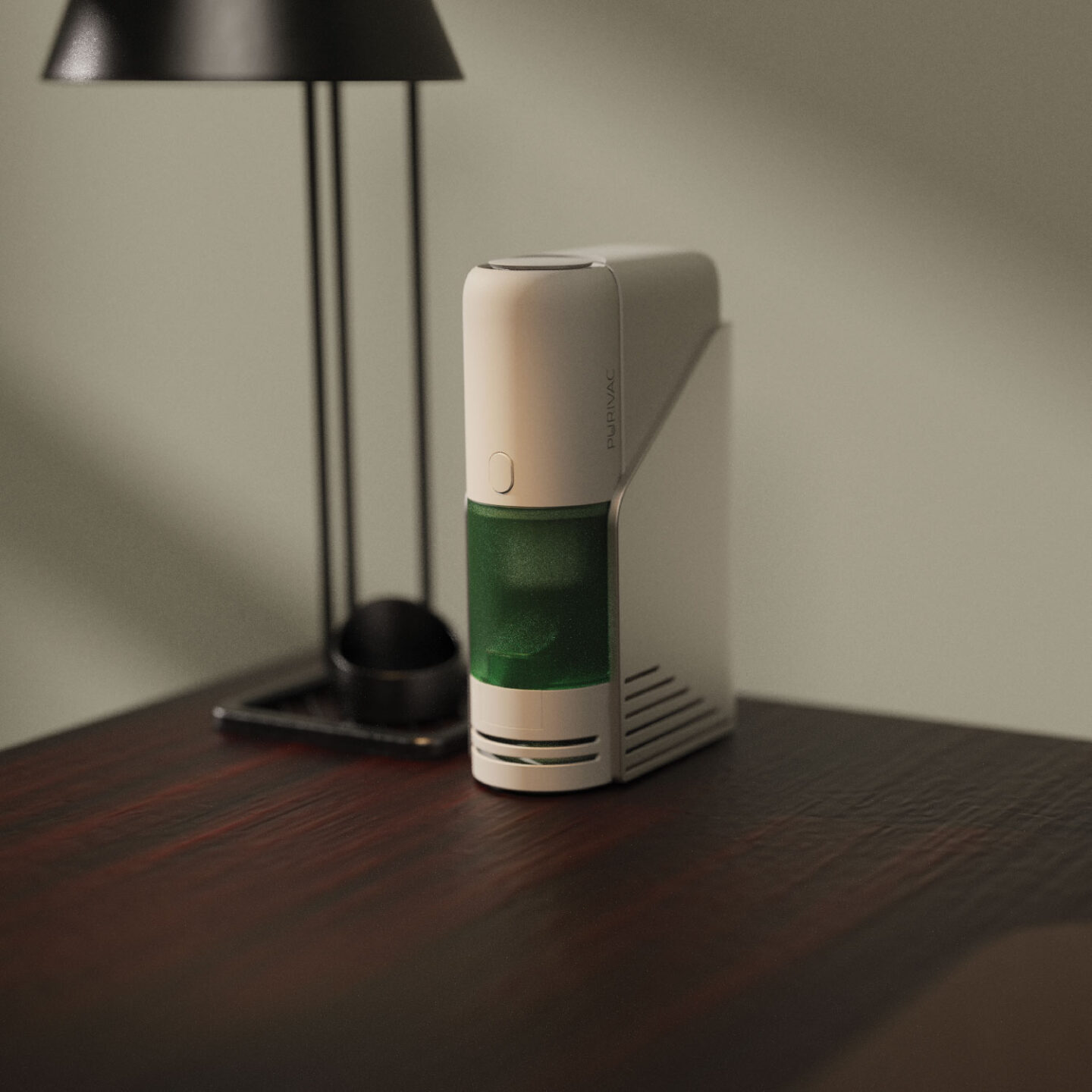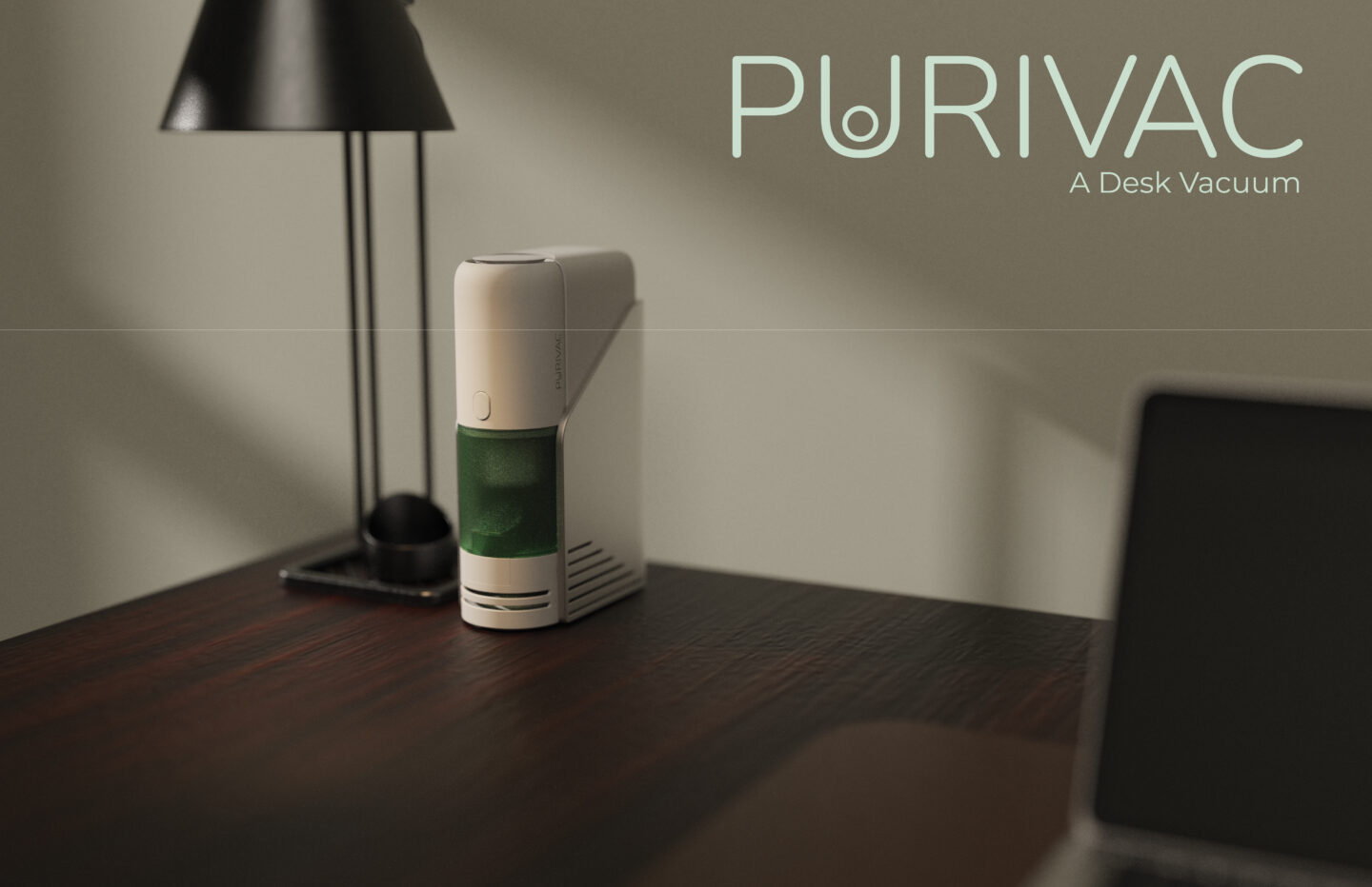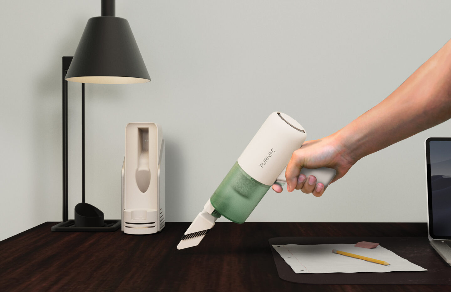 Purivac is a quiet desk vacuum cleaner that also serves as an air purifier.