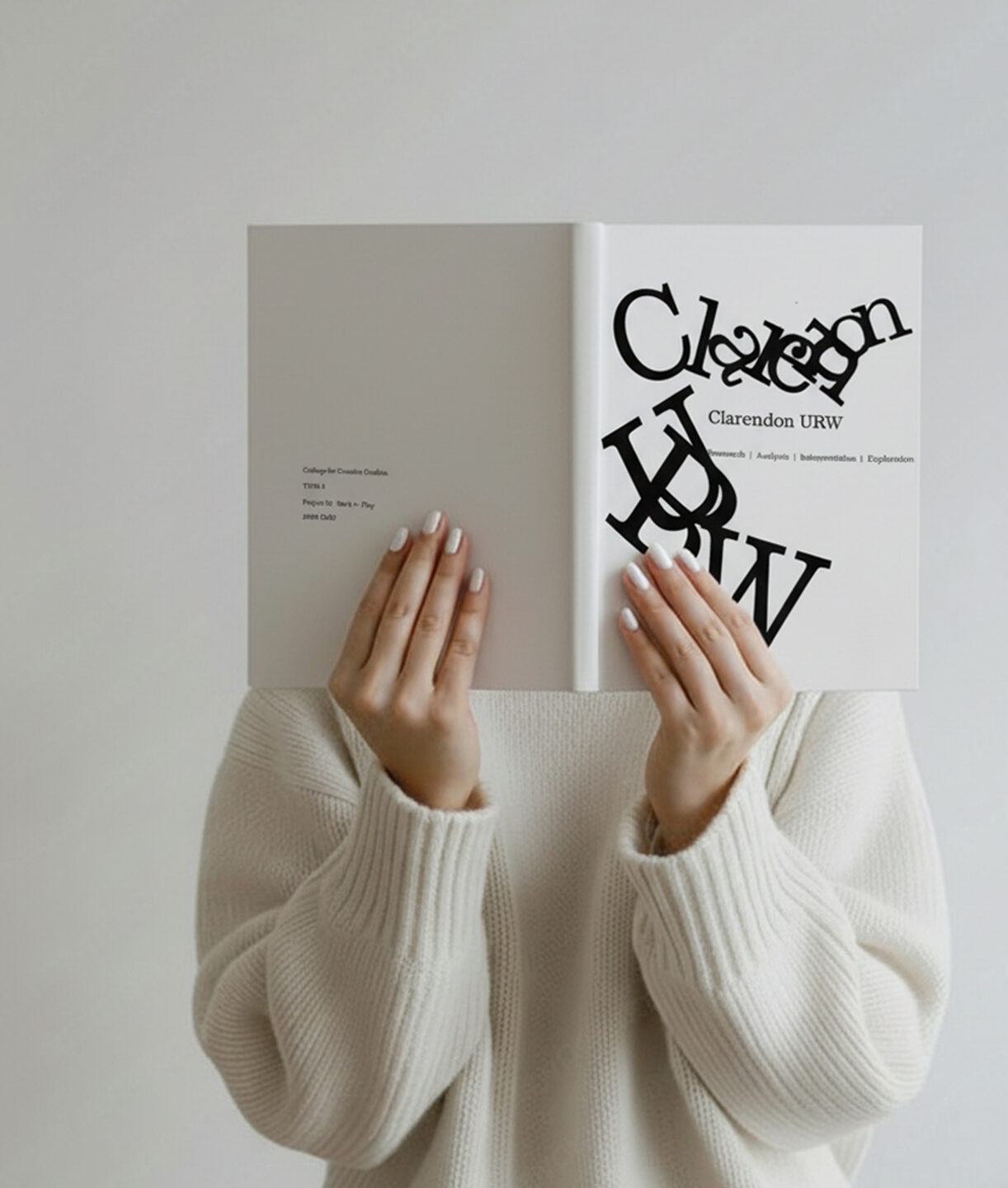 When I first started this project, I thought it would be straightforward—just putting the Clarendon URW letters in order and labeling their parts. But the deeper I looked, the more complicated it became. The curve of a shoulder, the weight of a stroke, even the way two lines connected—suddenly One of the hardest parts was deciding what to keep and what to leave out. Sometimes I wanted to show everything I noticed, but that only made the pages feel heavy. Other times I cut too much, and the work lost its meaning. I also kept running into the question of balance: how do I make a page look interesting without distracting from the type itself? I went through many versions, reworking layouts again and again, never fully satisfied. In the end, I chose this version because it felt like the typeface was guiding me instead of me forcing it. The process taught me patience, but more than that, it taught me to listen—to see design not just as something I make, but as something I can learn from