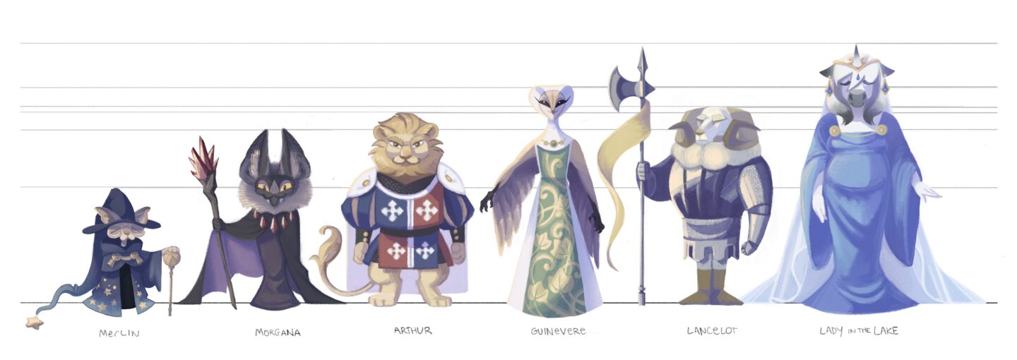 Animal characters based off the King Arthur mythology. The goal for this project was varying character height/build and indicating texture for 3d production pipelines.