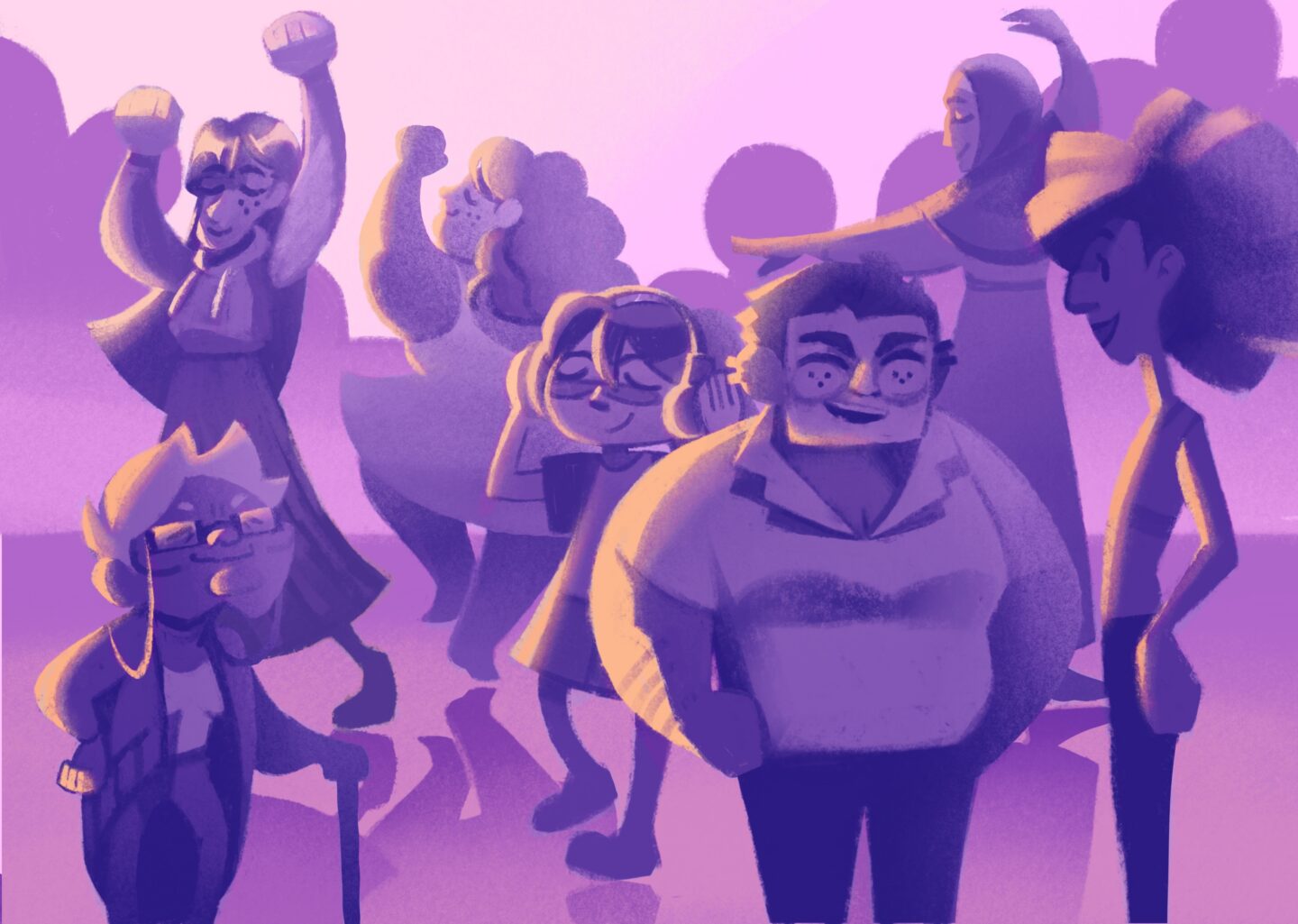 An illustration celebrating women of varying ages, races, and body types. This was partially personal expression and partially an exercise in character design and silhouette.