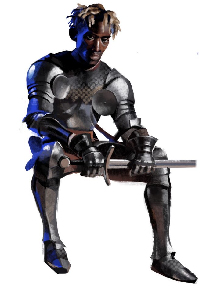 Study from a costumed figure pose. The primary focus was lighting and practicing stylized lasso tool rendering.