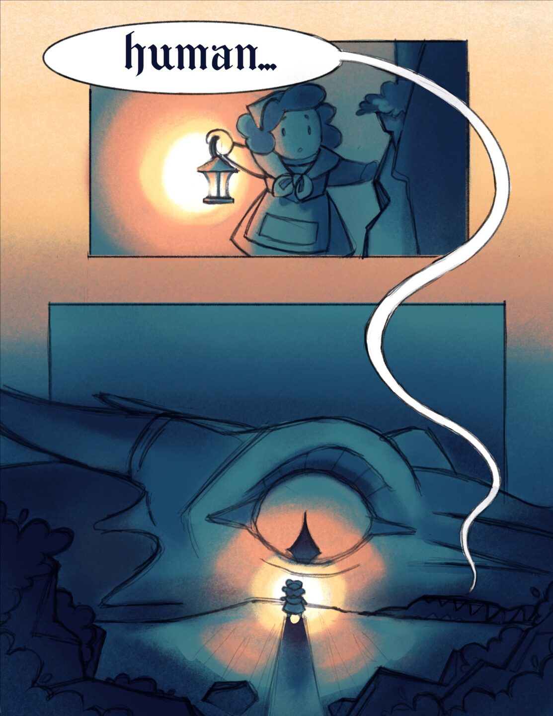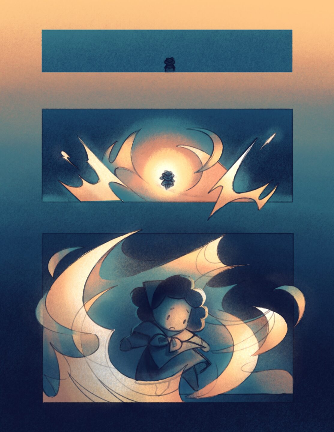 A short segment of an original comic story. The goal here was cinematic pacing and contrasting a highly simplified character with a more realistic one.