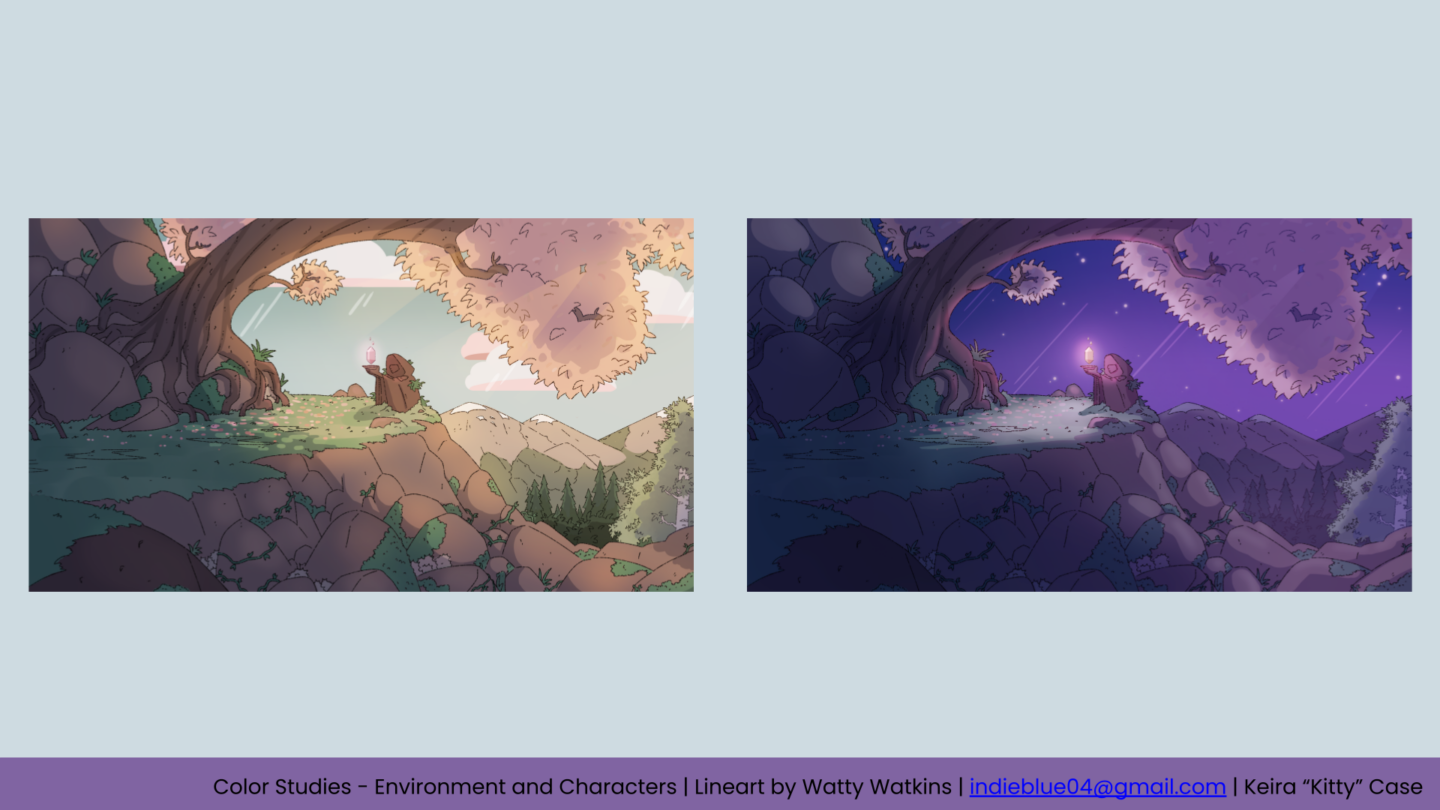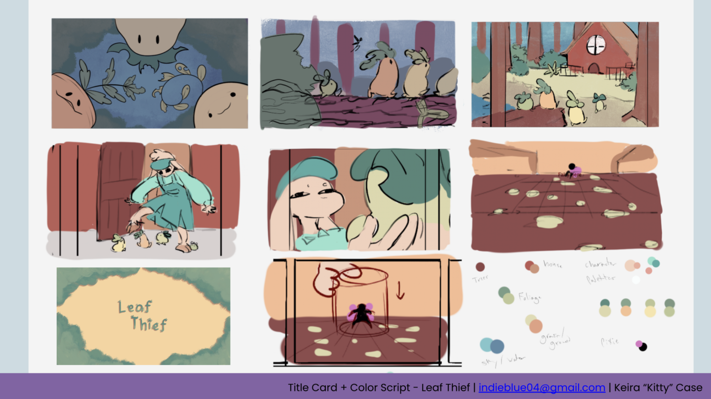 Demo Reel for Industry EXPO 2026 Collected like Treasure: Story, Character Design, Boards, Rough Animation, Lineart, Color, Compositing by Kitty Case Backgrounds by Liz Wojcik Escaping the Event Horizon Story, character design, rough boards, and clean lines by Kitty Case Leaf Thief Rough animation, lineart, color by Kitty Case Character Designs, Story by Kitty Case, Lael Levy, Bea Nasarzewski, Ami Gottsman Compositing by Ami Gottsman