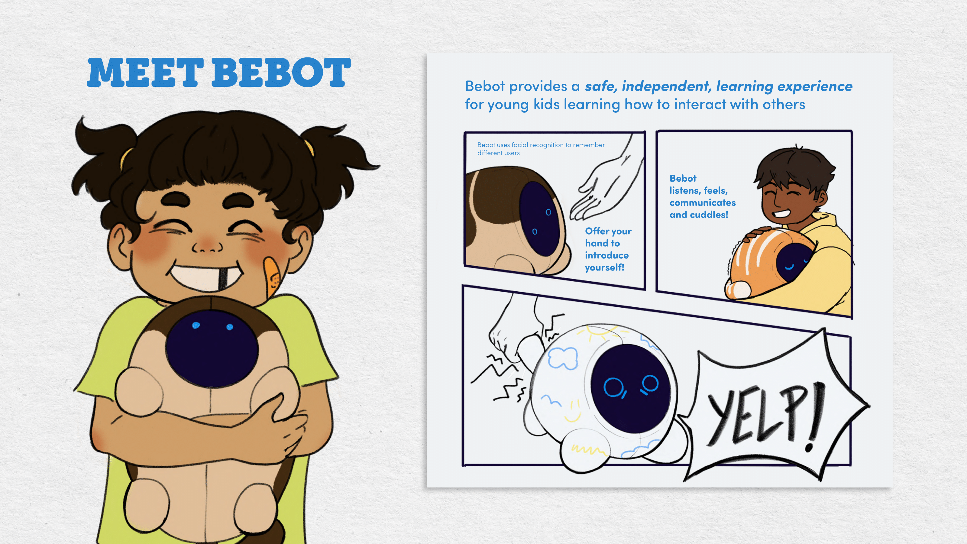 Bebot Kolin Baker Bebot A soft, squishy robot that uses body language and vocal feedback to help kids learn how to interact with animals.