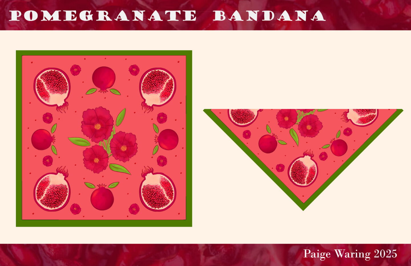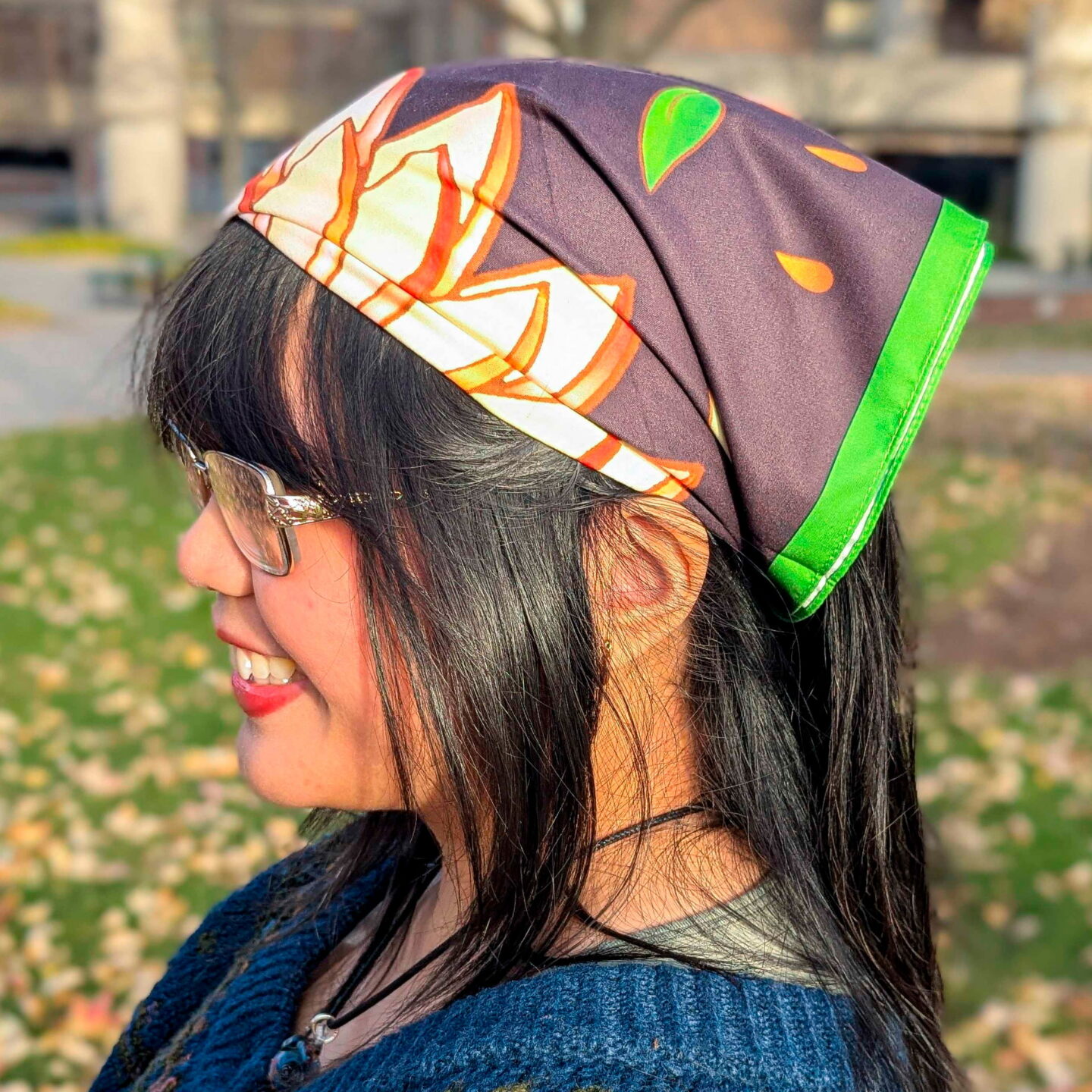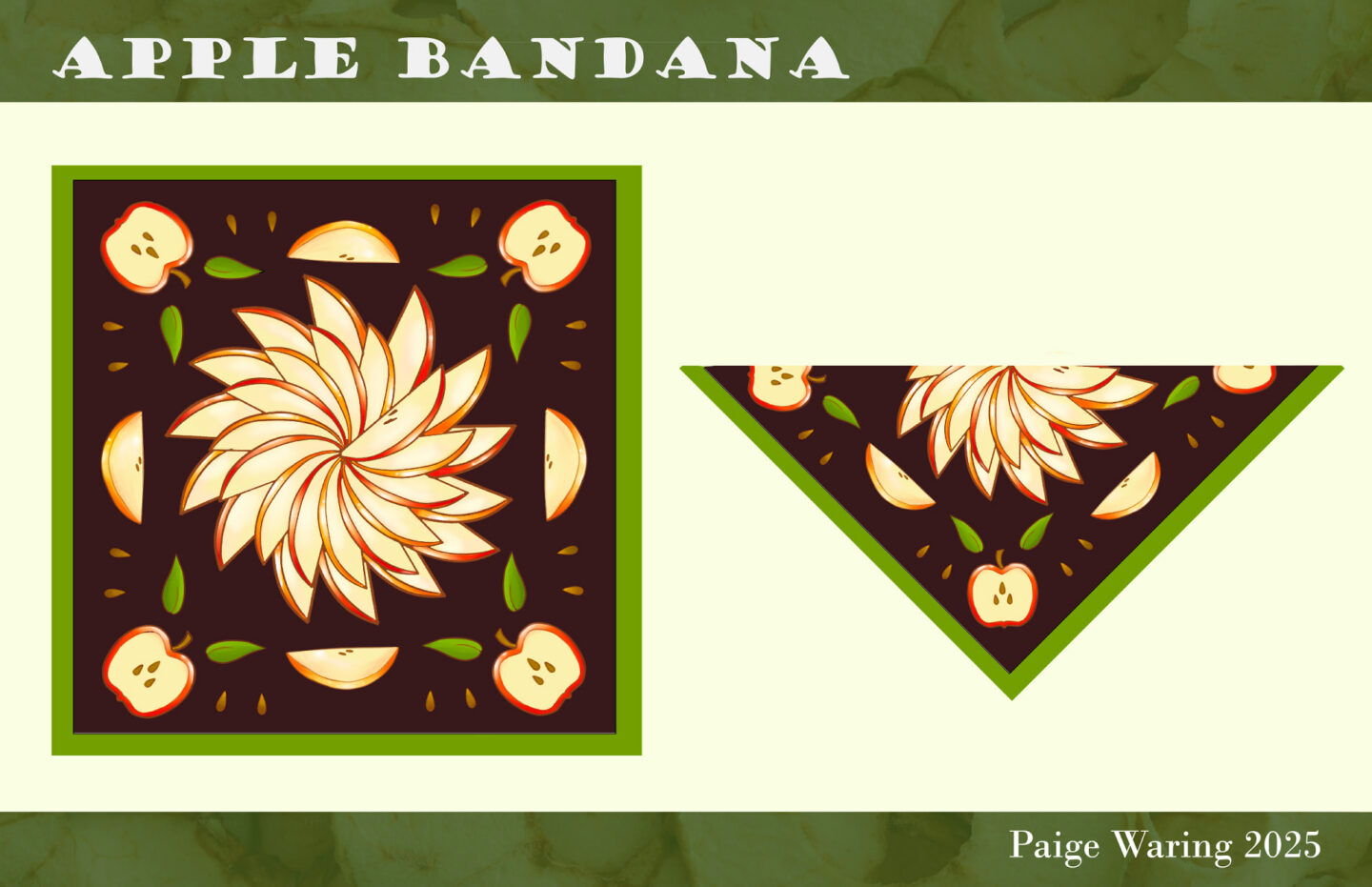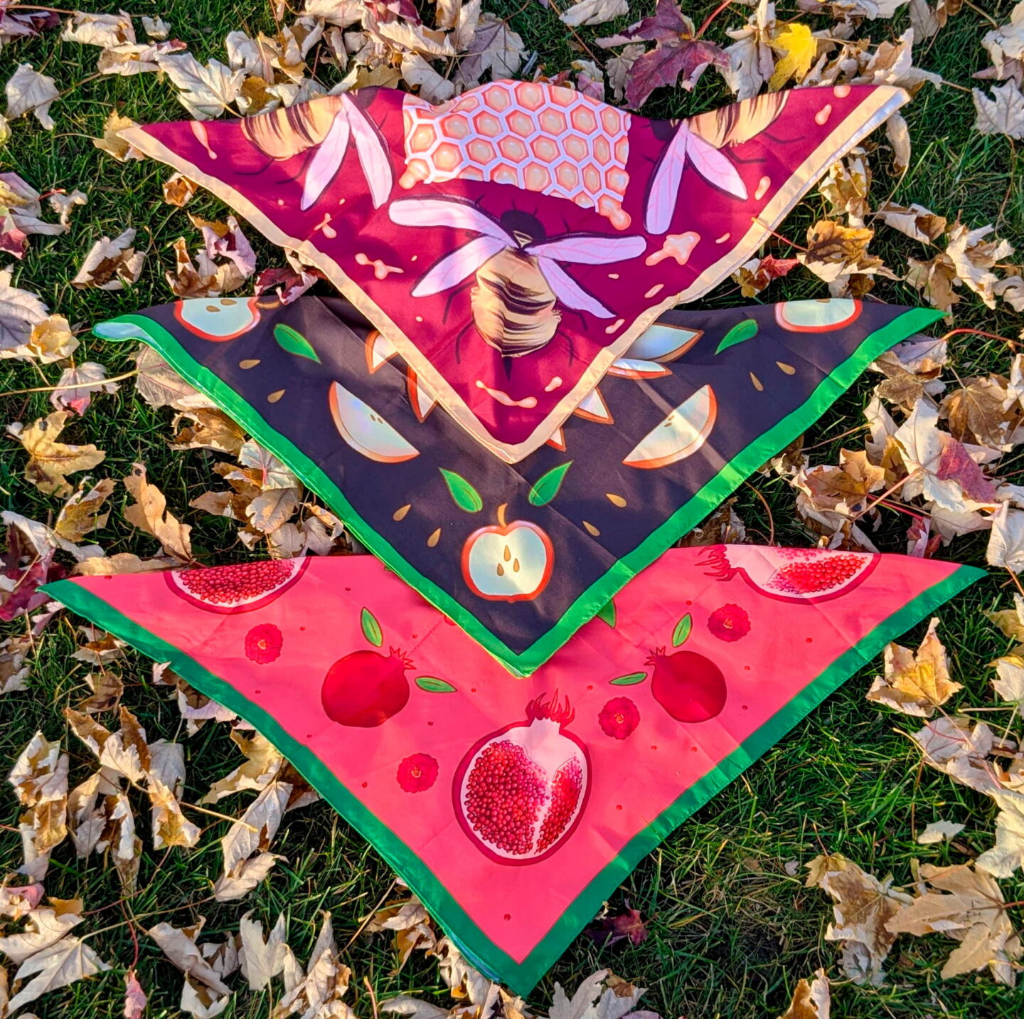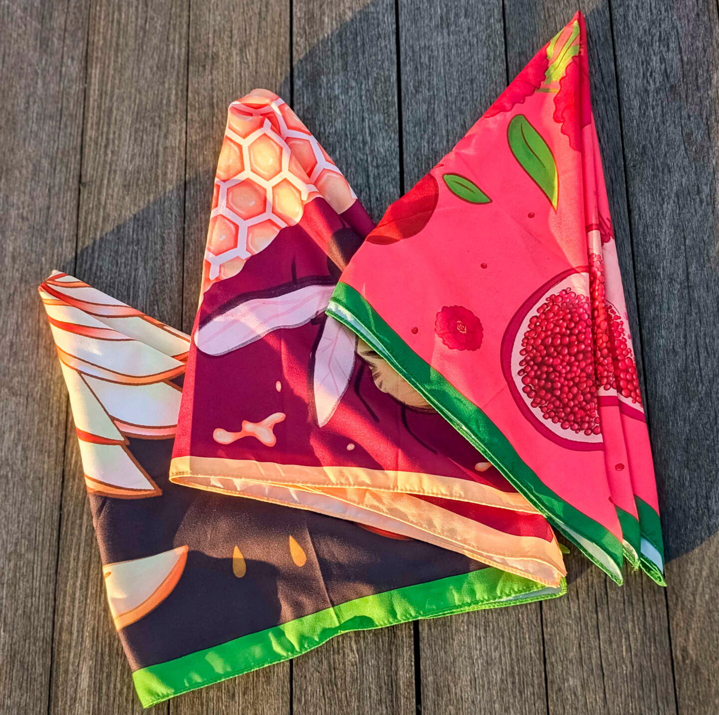 A set of food-inspired bandanas designed and manufactured for personal shop stock. These are designed to be visually interesting, no matter how it's folded, worn, modified, or displayed.