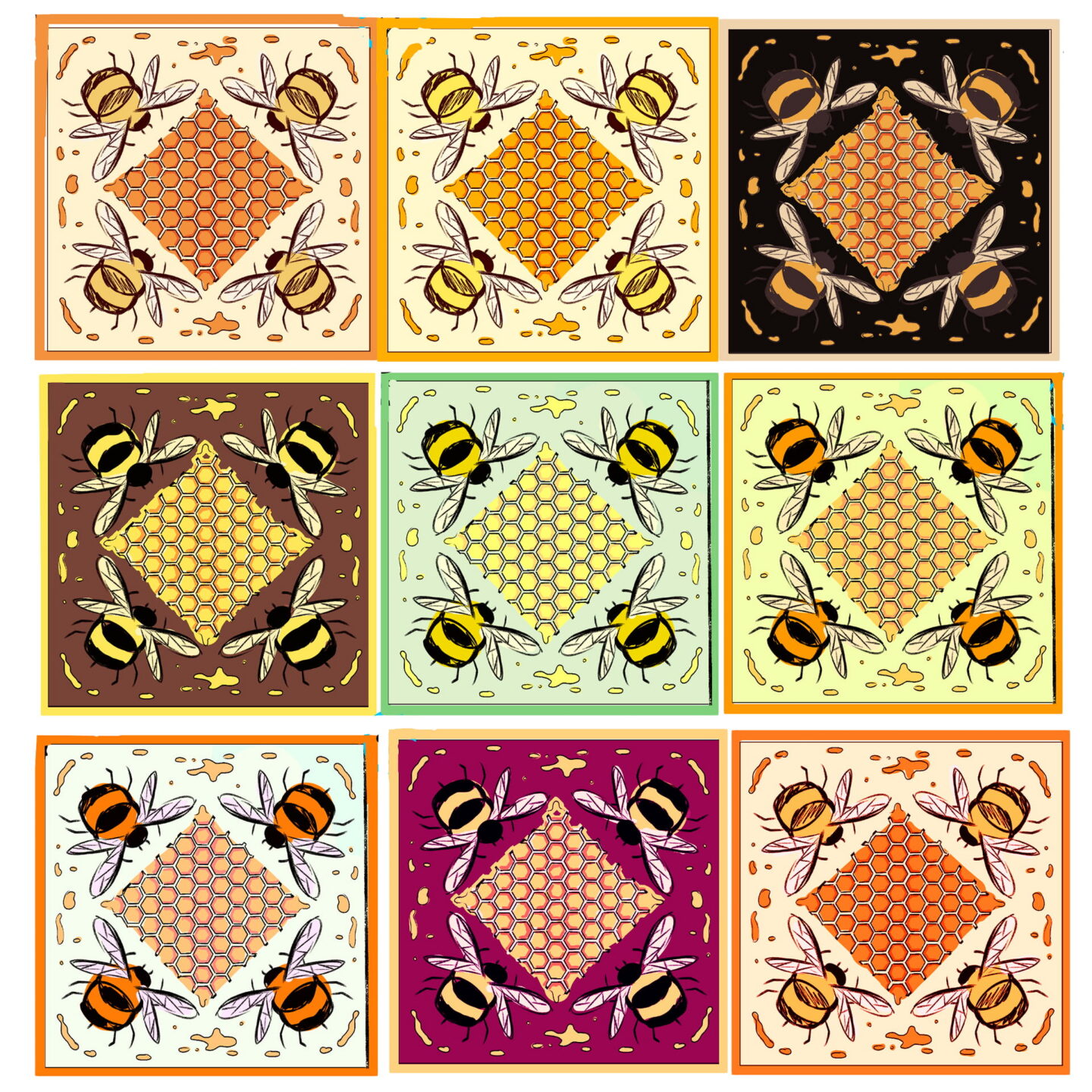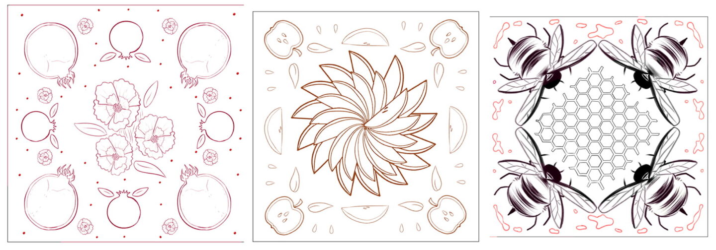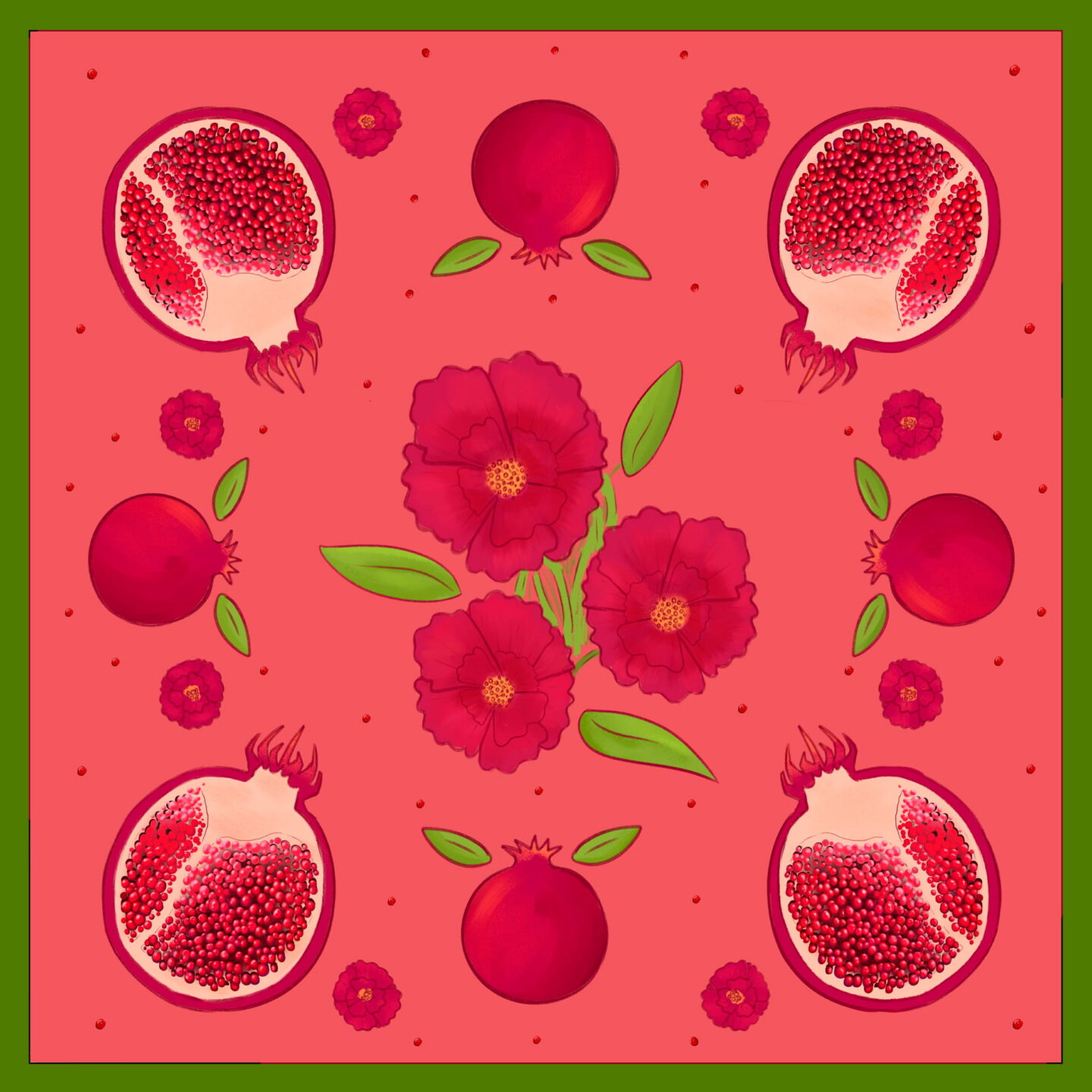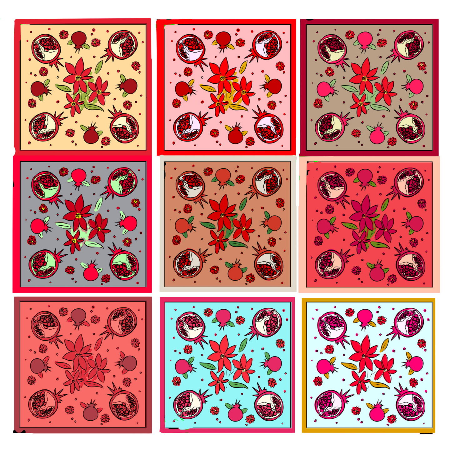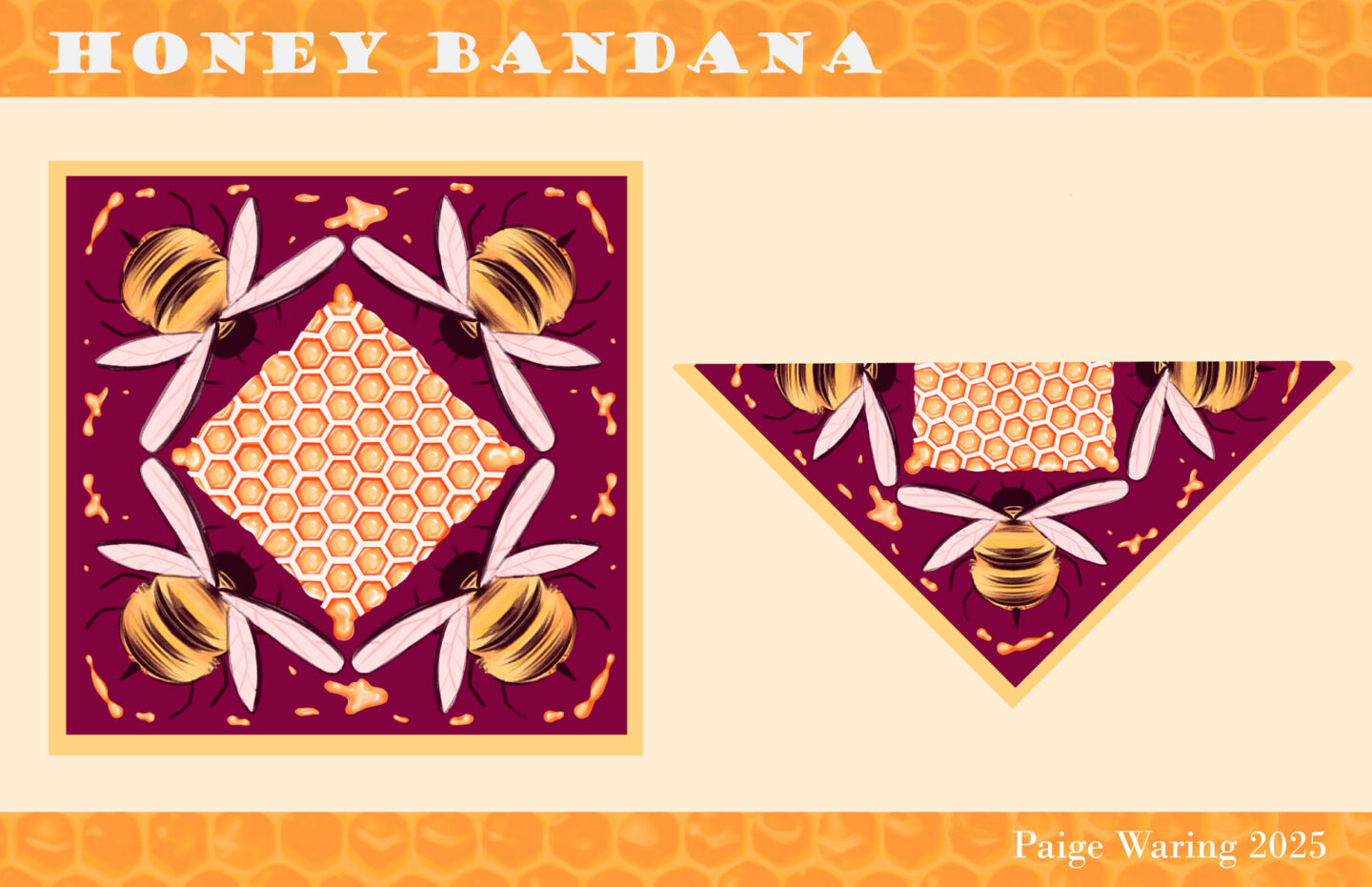 A set of food-inspired bandanas designed and manufactured for personal shop stock. These are designed to be visually interesting, no matter how it's folded, worn, modified, or displayed.