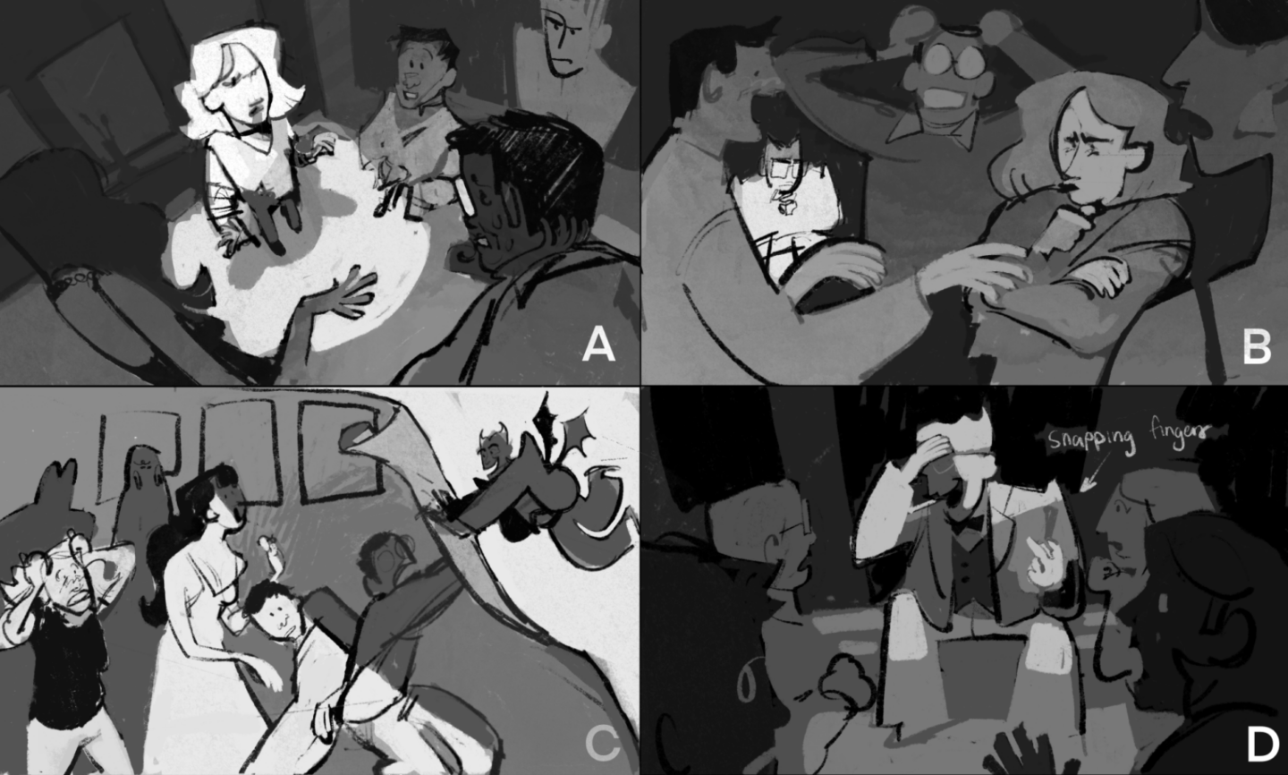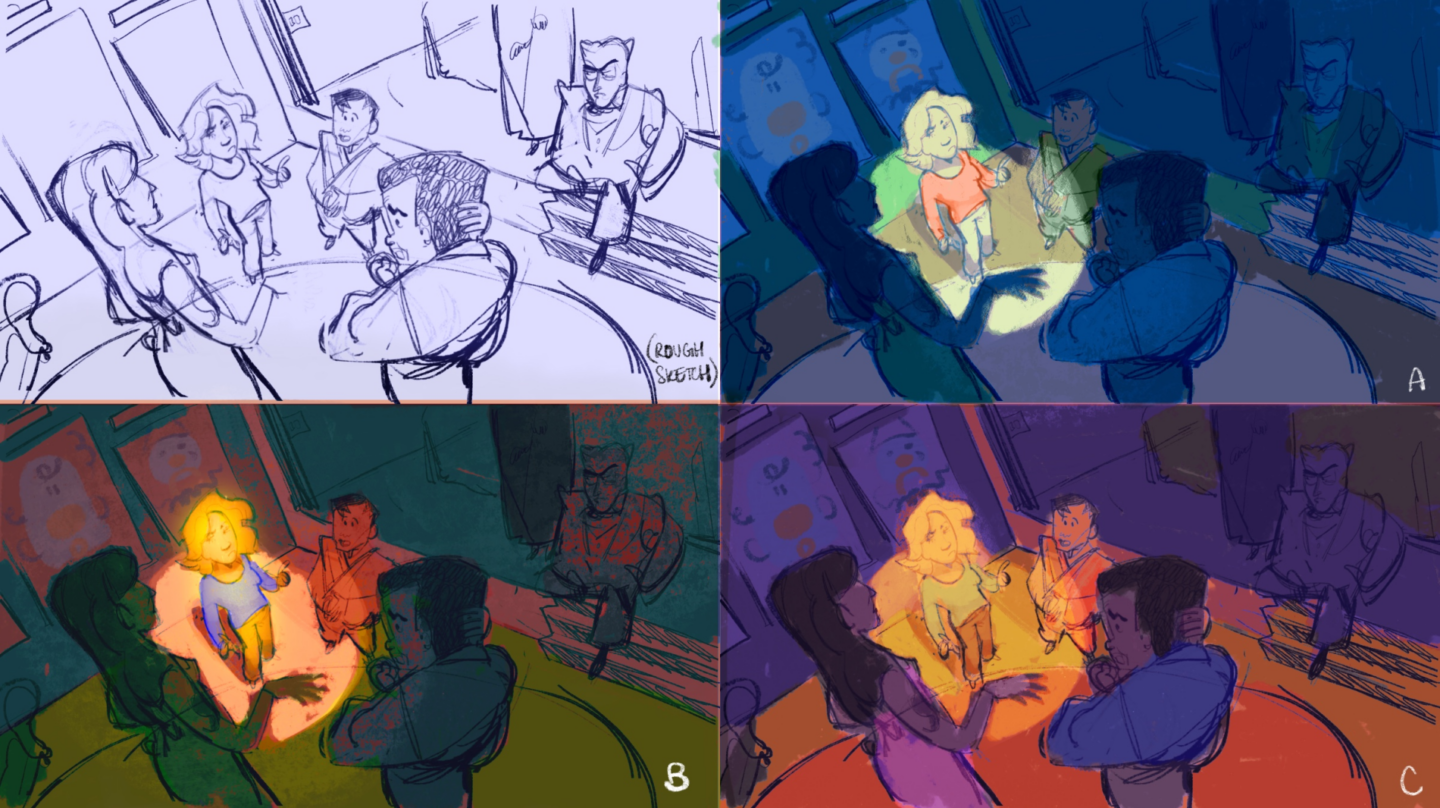 Ideation for a 2D adaptation of The Good Place (2019) through my visual development (character) class