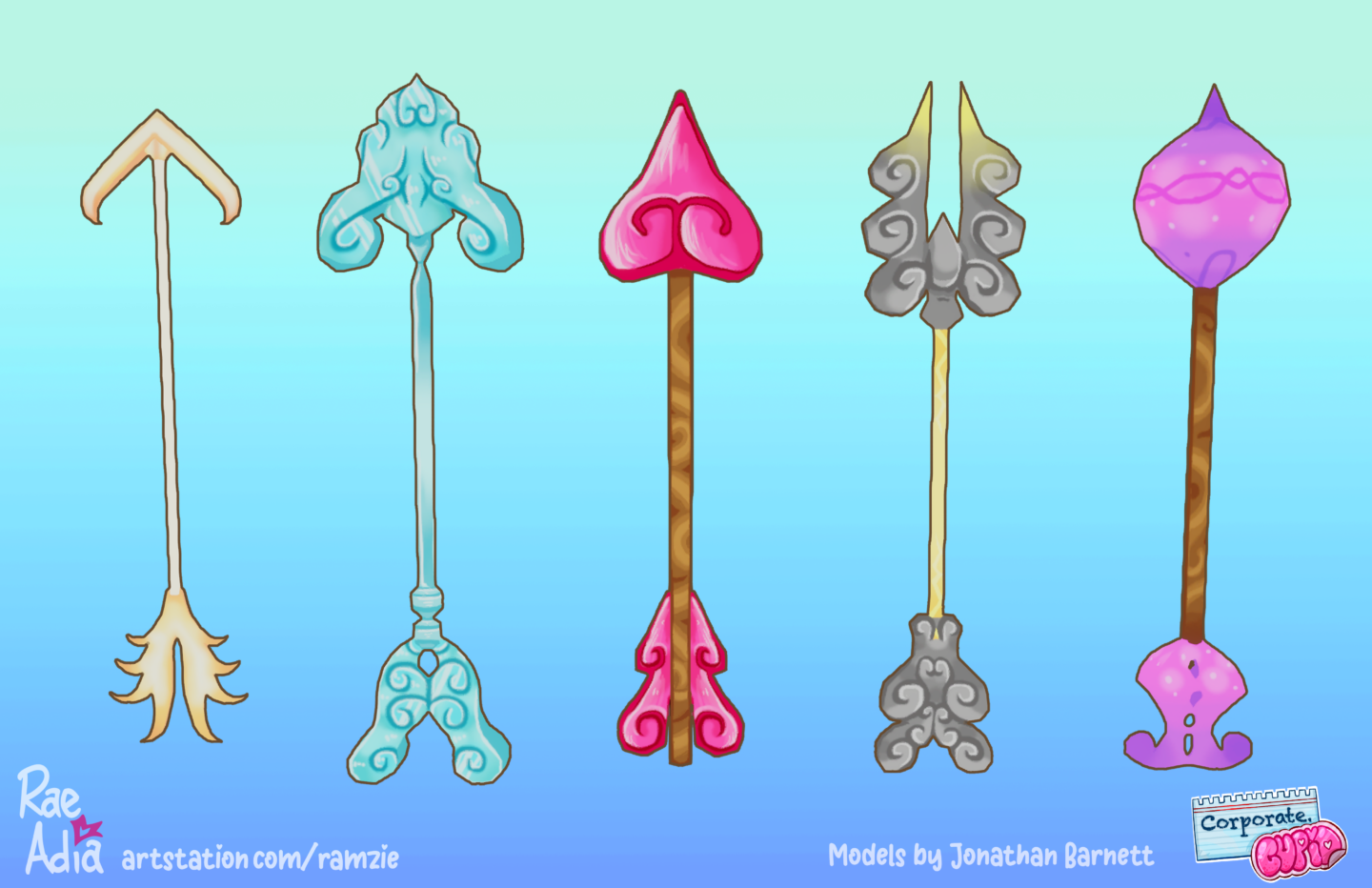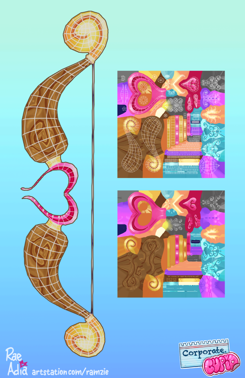 In honor of its recent release on Steam, here's the hero asset I did for my junior class's game, Corporate Cupid. This is Cupid's Bow, his weapon of love to fight against the gloom of the corporate workers! After bouncing concepts of the bow back and forth collaboratively with concept artist Zayyan Aslam, I worked on the model in Zbrush and Maya. While I made the textures in Substance Painter for both my bow and the arrows, the arrows were modeled by Jonathan Barnett.