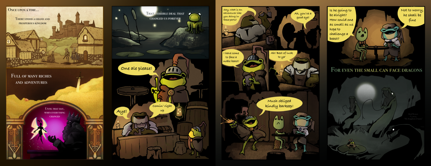 Anura was a once a grand a prosperous kingdom, but it was forever changed when a deal was made, cursing all of the land's people to live as frogs. It was created originally for the CCS Comic Club Fantasy Anthology. My goal was to expand upon the classic Frog Prince story and adapt it to a larger narrative that I plan to further explore.