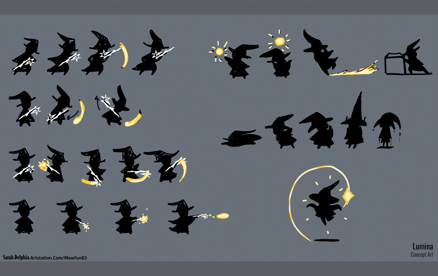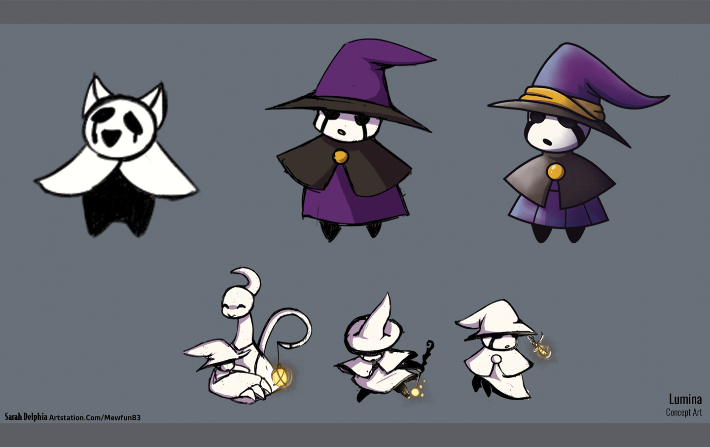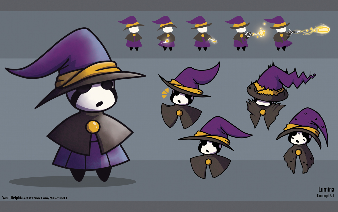 A collection of various ideation and polished images for the main protagonist of Lumi-Dungeon, Lumina!