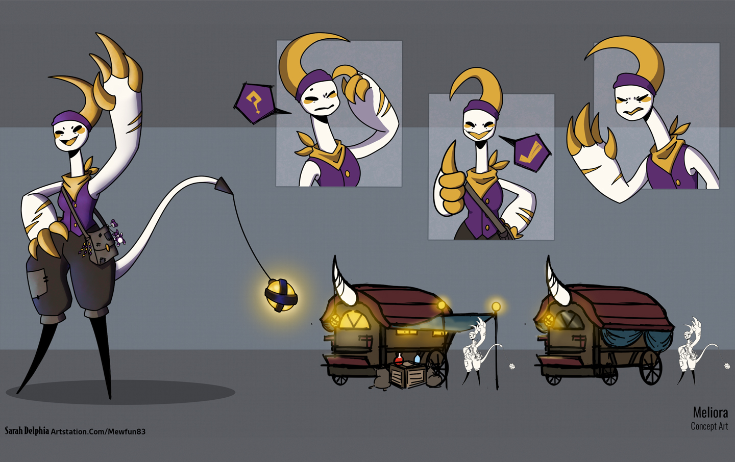 A collection of various ideation and polished images for the merchant NPC in Lumi-Dungeon, Meliora!