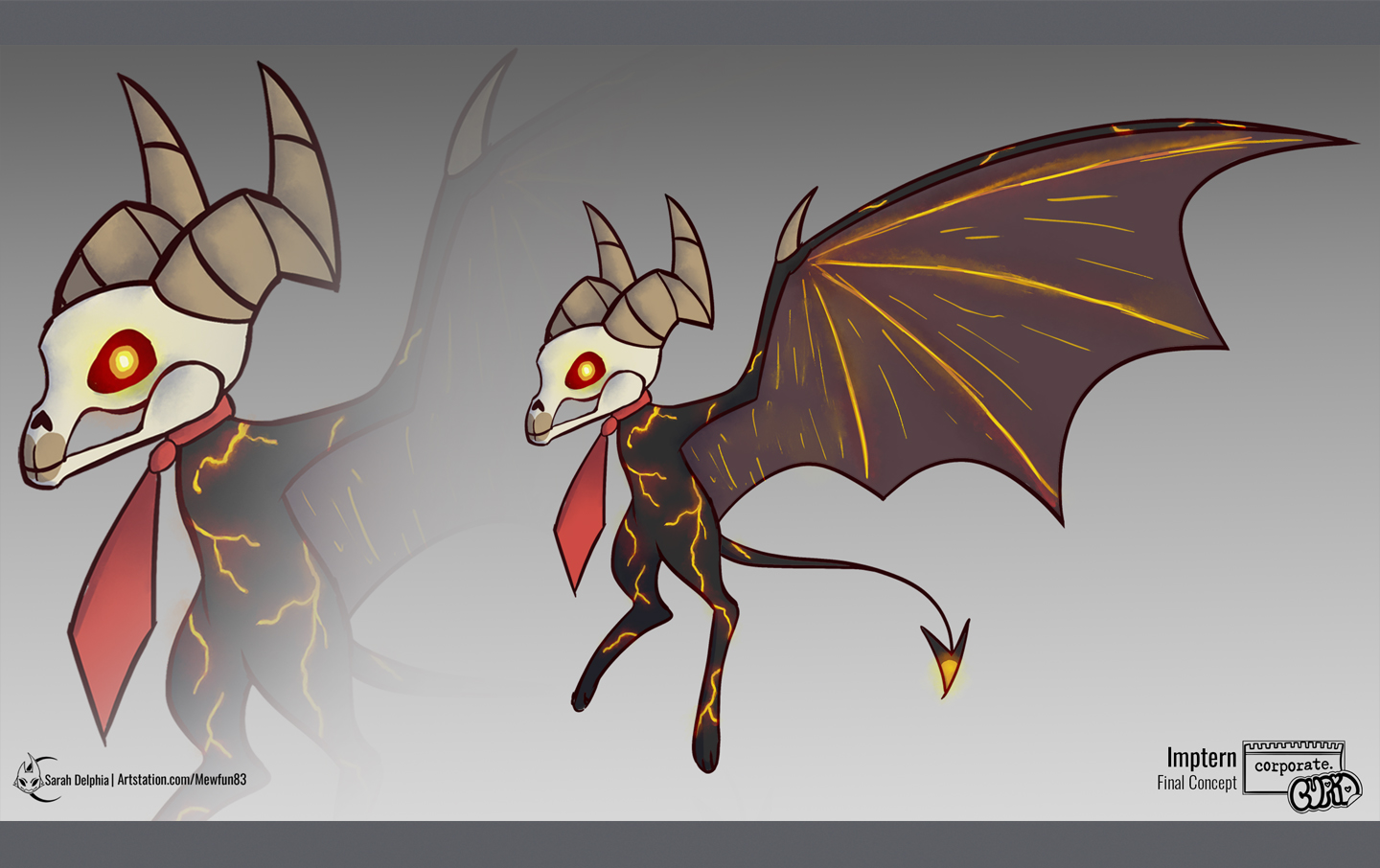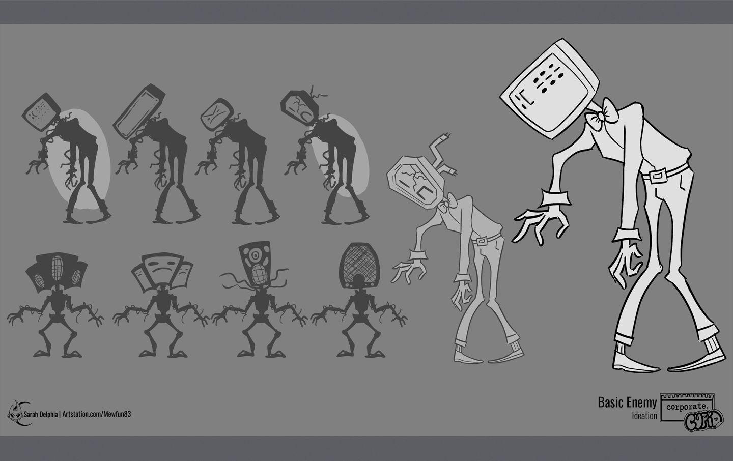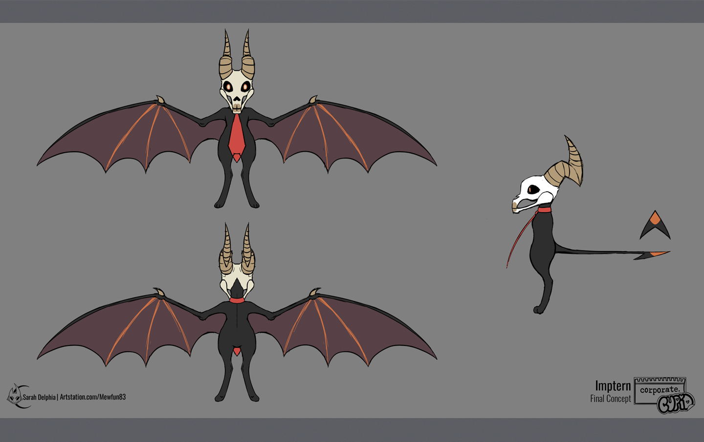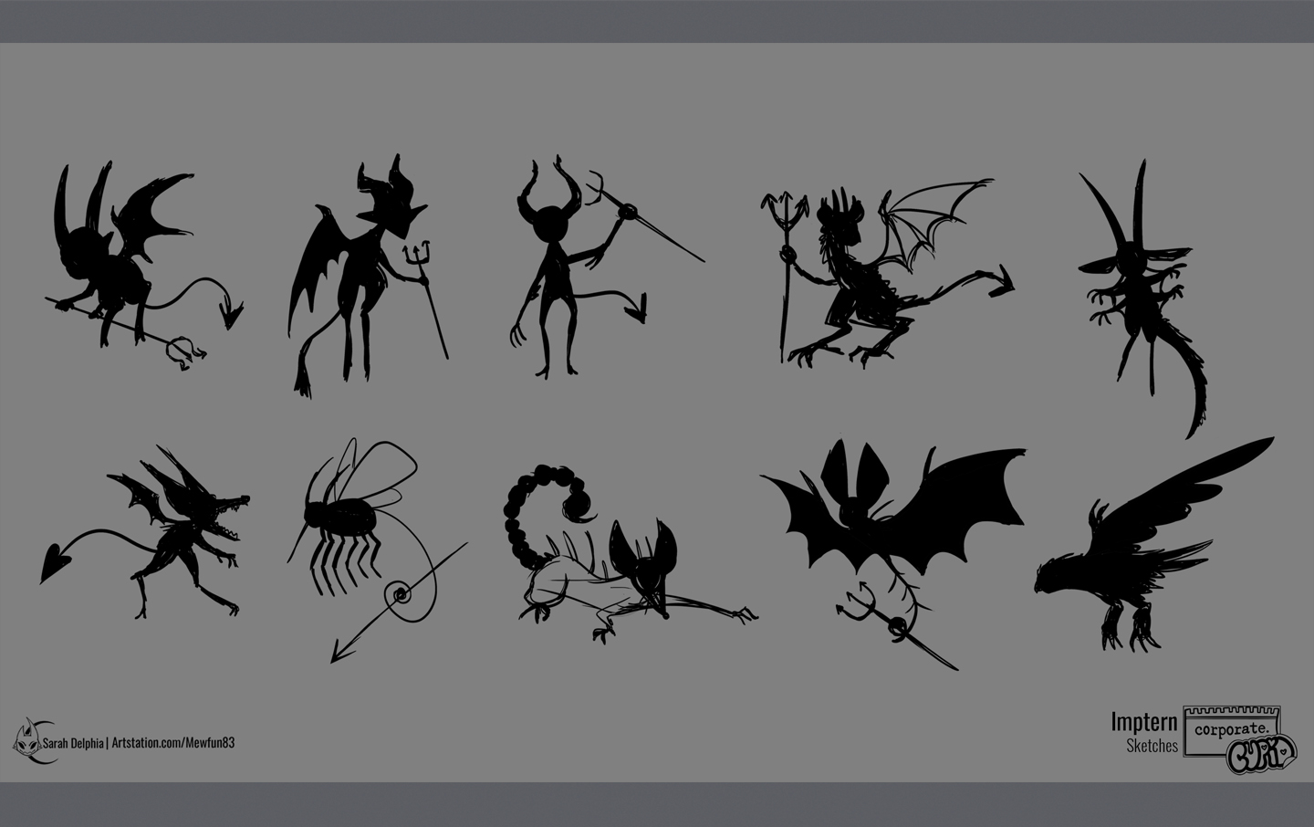A collection of images showing how I help create the minion aiding the final boss of Corporate Cupid, the Impterns!