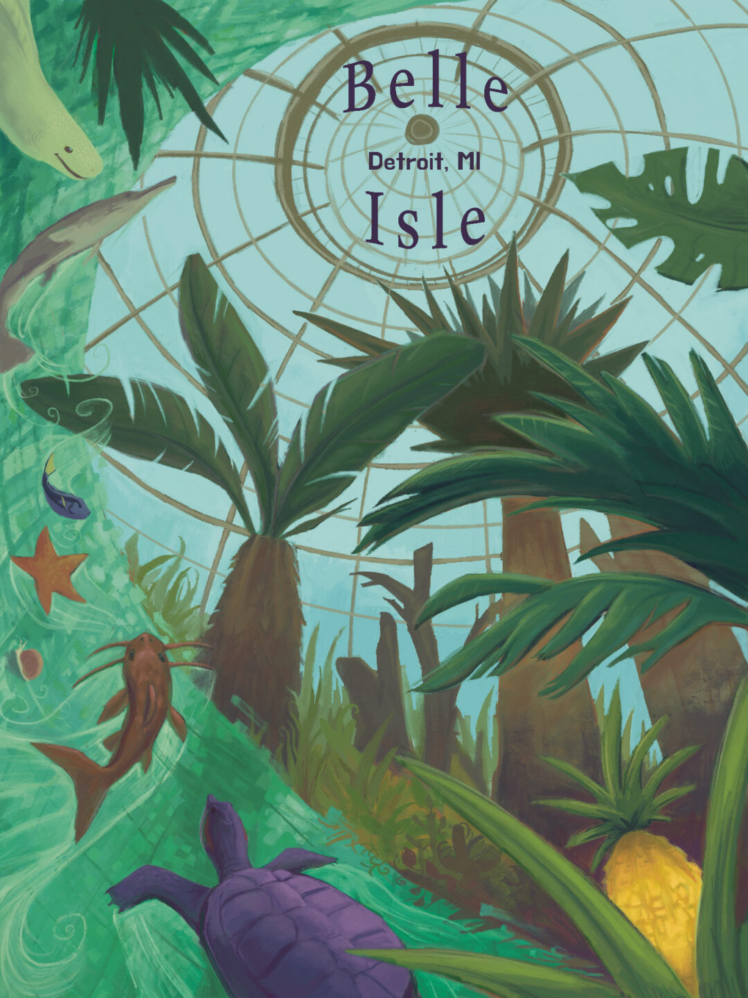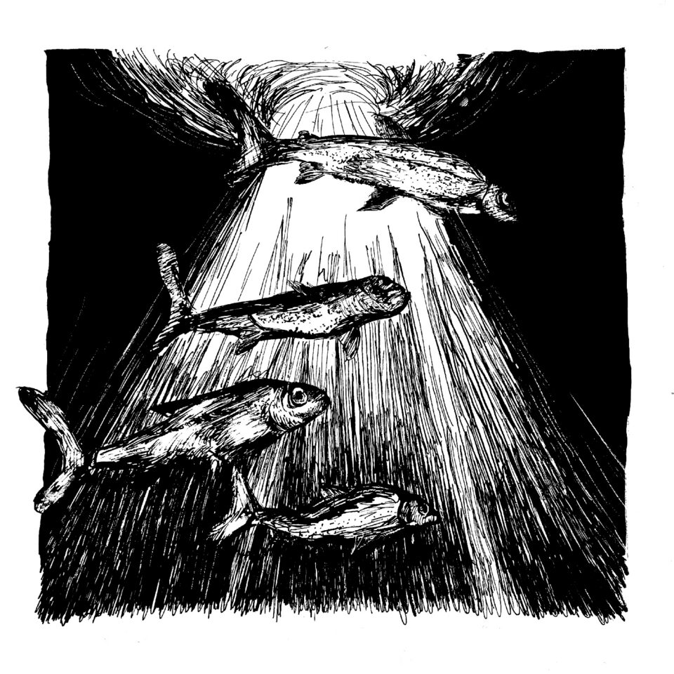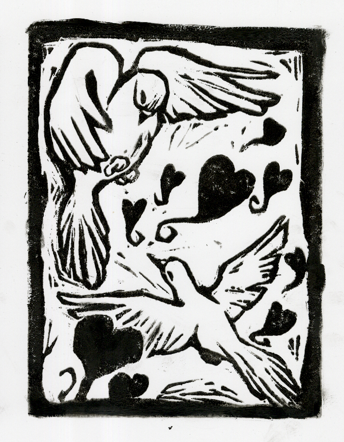 Illustrations made through linocut printing.