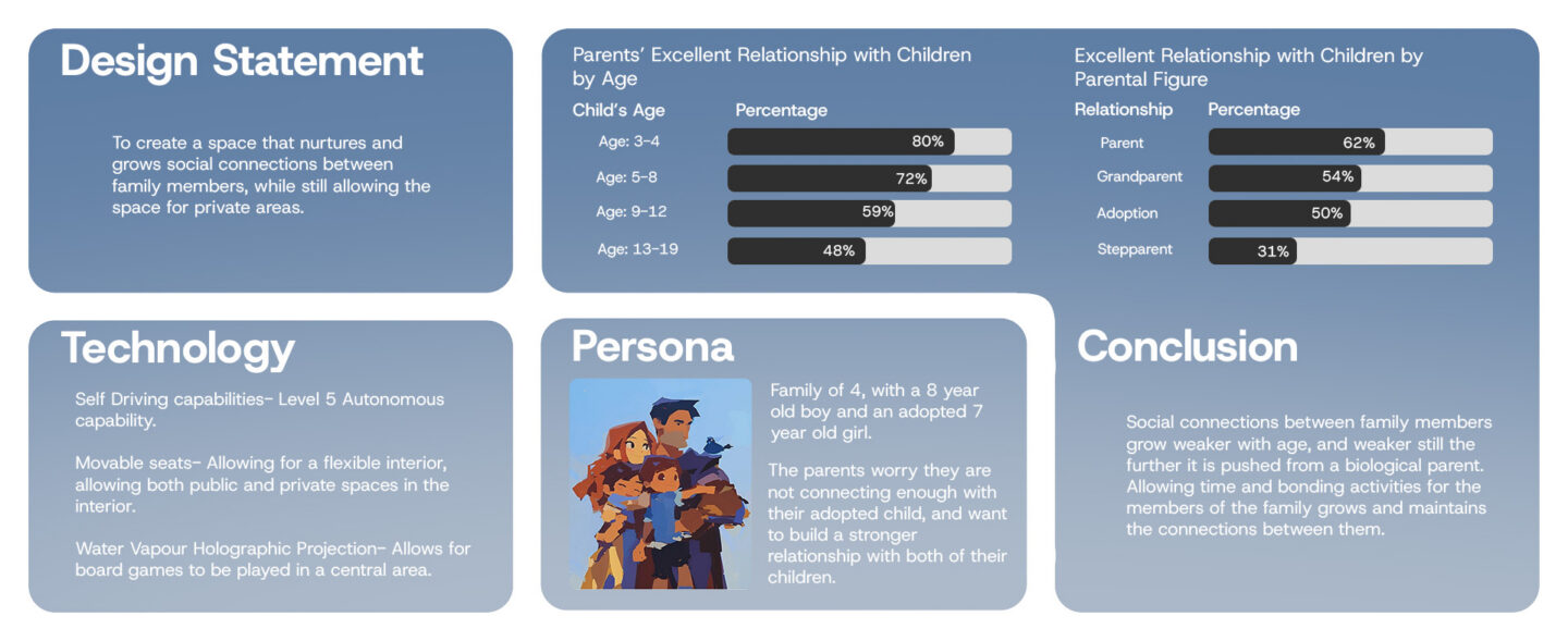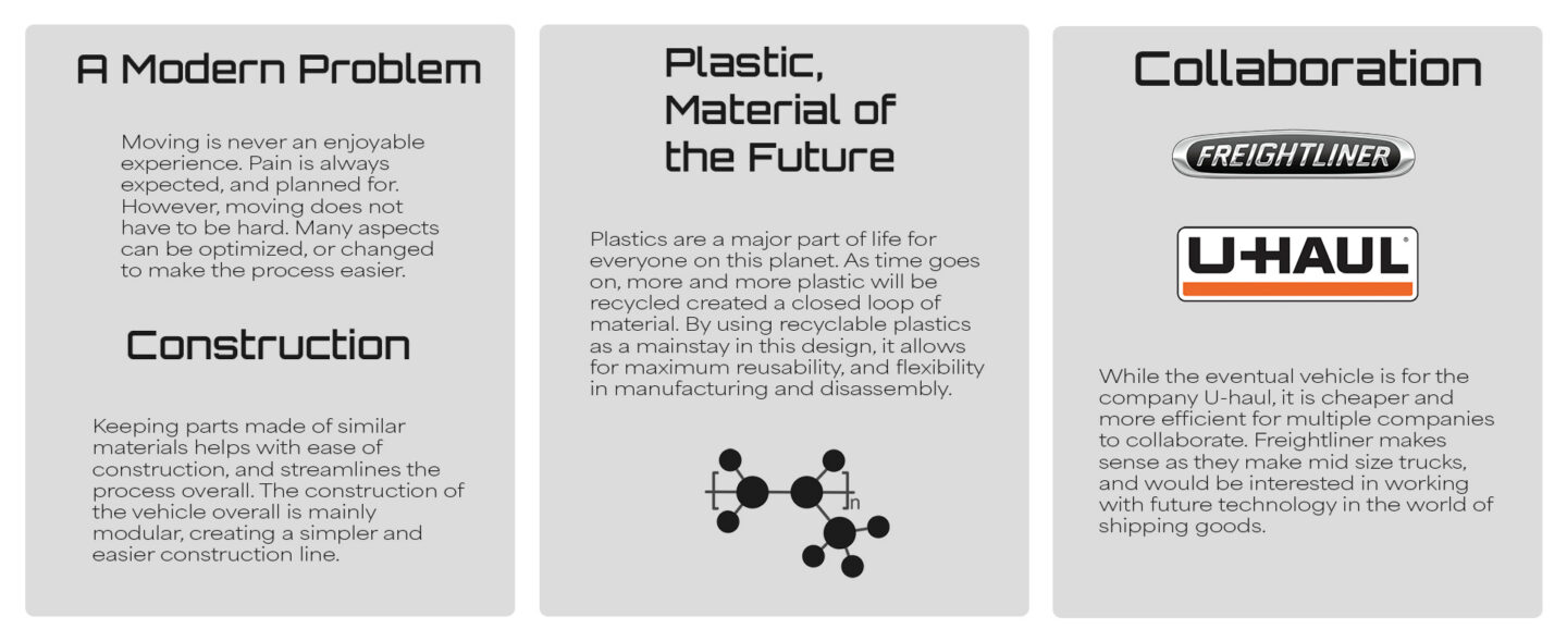 Appalachia is a moving van designed to make moving less stressful and easier. A vehicle offered to rent from U-haul, it has level 4 autonomous driving, and a cargo space equivalent to the 15-foot truck currently offered. It is a reimagining of the drive it yourself moving van, moving the concept into the future.