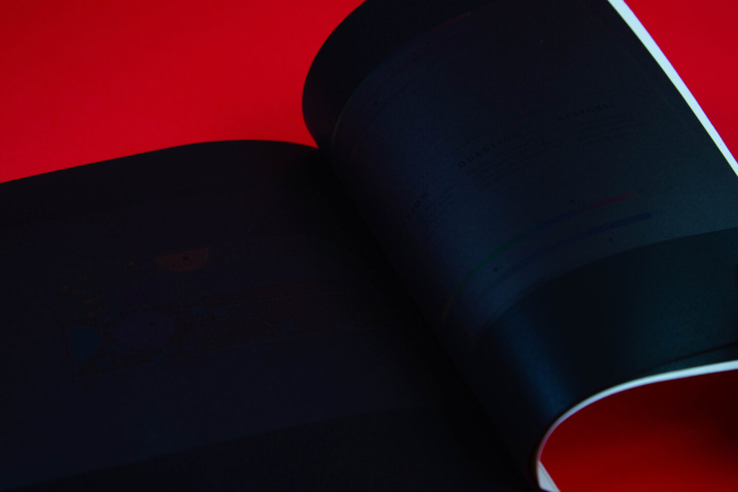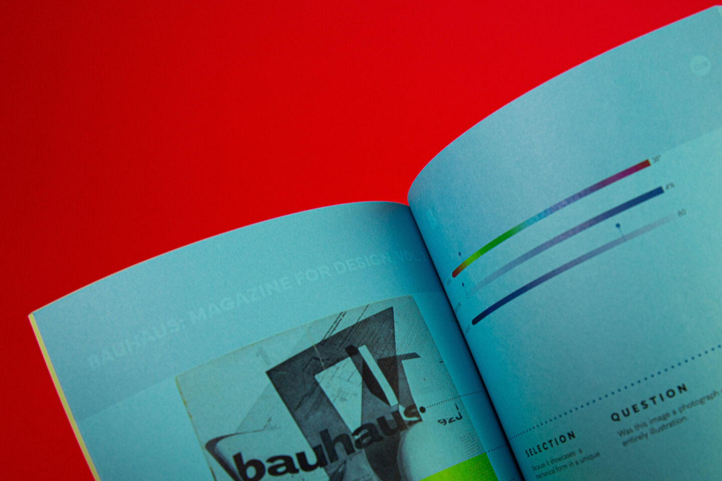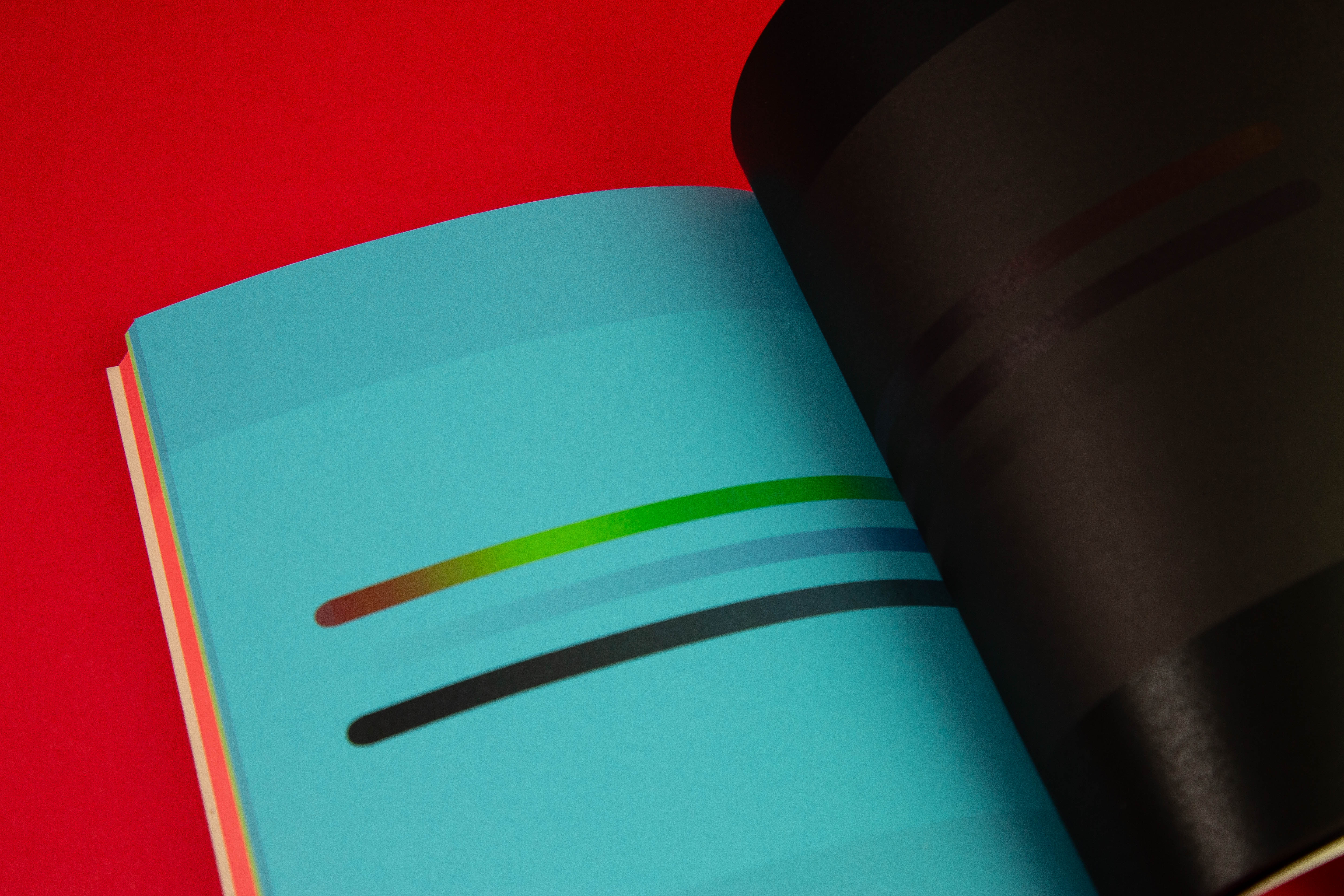 The Design Archive project, also known as RGBK, is a collection of seventy design works from across design history. Its purpose was to bring a personal perspective to the history of design by highlighting an identity shaped by colorblindness. RGBK is organized into four distinctive sections: red, green, blue, and black. This structure was designed to highlight color and emphasize different kinds of light while integrating the concept of colorblindness. The works themselves were curated from a variety of online digital archives, selected for their alignment with both a design philosophy and an aesthetic that resonated on a personal level. Each composition is bisected by a strong hangline, with the top half devoid of the primary wave of light present in the original. For instance, a work with primarily red has the red removed in the top half, leaving only its blue and green components. This treatment illustrates the scientific basis of colorblindness, in which a defective light-receiving cone alters the perception of light. This scientific functionality established the publication’s identity and became the foundation of the project. Balancing these conceptual ideas with the systematic nature of an archive presented challenges, particularly in terms of legibility and scannability. The shifting color palettes introduced depth but also made the text difficult to read in early iterations, at times approaching complete illegibility. Careful adjustments were required to balance visual experimentation with functional clarity. This process emphasized the importance of refining details so that the final archive not only appeared striking but also retained structural and conceptual integrity. In the end, the project became both an achievement and an educational experience, demonstrating the balance between aesthetic experimentation and the practical demands of functionality.